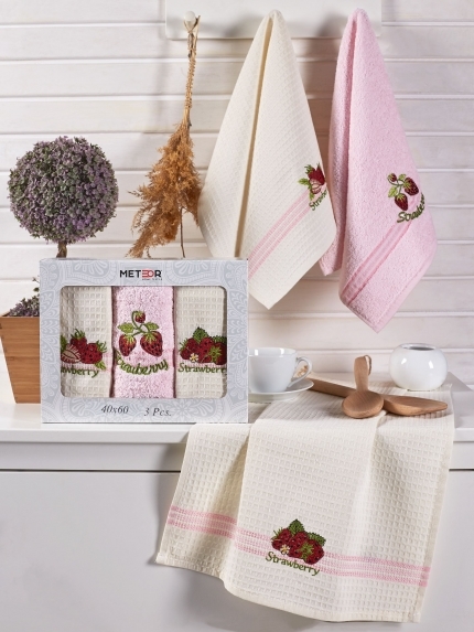 11008 MIMOZA CILEK Махра-Вафля  (40х60)х3шт в коробке Набор кухонный Метеор