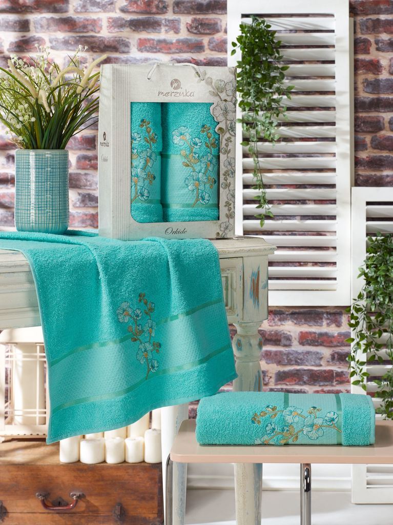 11038 Бирюзовый ORKIDE (50х90+70х140 ) в коробке Набор полотенец  MERZUKA