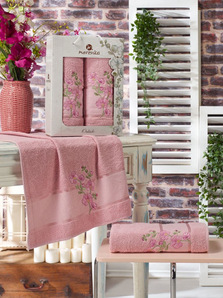 11038 Розовый ORKIDE (50х90+70х140 ) в коробке Набор полотенец  MERZUKA