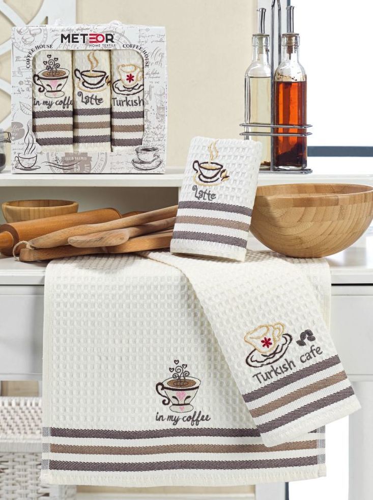 11004 MIMOZA KAHVE Махра-Вафля (40х60)х3шт в коробке Набор кухонный Метеор Вопросы по товару