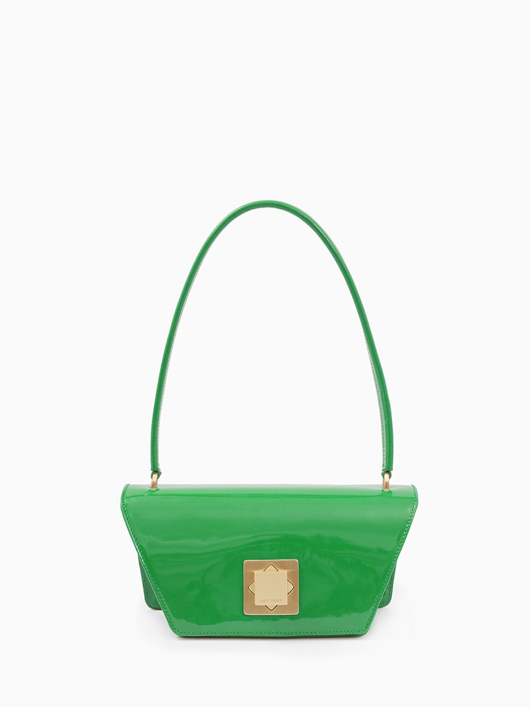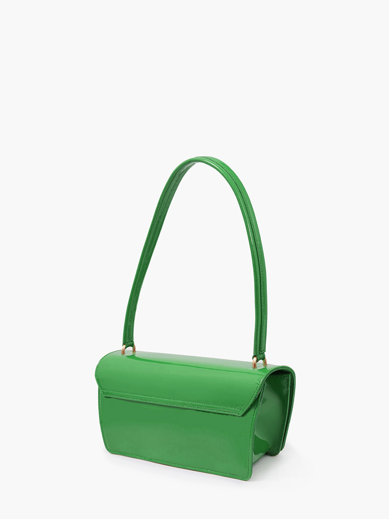 Минималистичная сумка-багет с длинной ручкой от ARCADIA из лаковой кожи нефритового оттенка Материал: натуральная лаковая кожа Размеры: Длина по дну: 24 см Длина по верхнему краю: 27,5 см Ширина: 10 с... Показать описанием Высота: 13 см Общая высота с ручкой: 41,5 см Описание: Минималистичная сумка-багет от итальянского бренда ARCADIA выполнена из натуральной лаковой кожи, дополнена длинной ручкой и фирменной пряжкой. Данная модель закрывается клапаном на фурнитуру, носится на сгибе руки, в руке или на плече Внутри: одно отделение, боковой карман для документов на молнии Производитель: Arcadia s.r.l., Италия Расположение производства: Италия