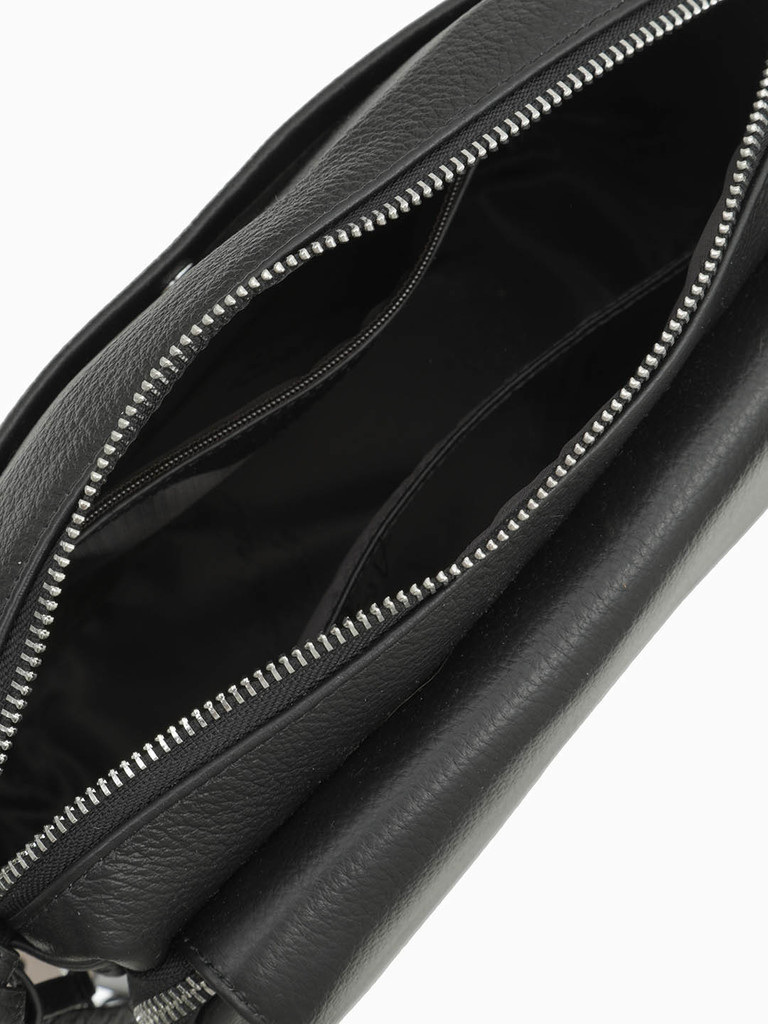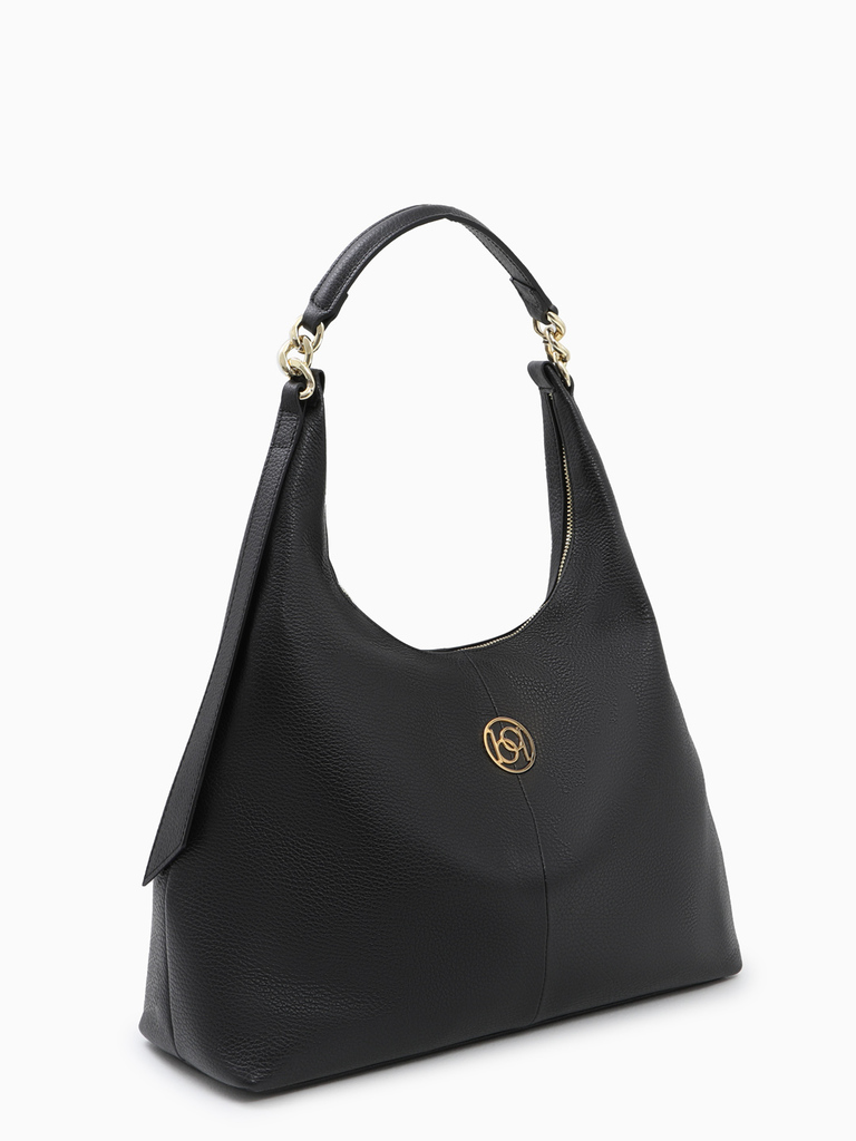 Сумка - хобо с комбинированной ручкой от BE NICE в чёрной коже Материал: натуральная кожа ? Размеры: Длина по дну: 36 см Ширина по дну: 13 см Высота по центру: 27 см Общая высота с ручкой: 52 см Описа... Показать описаниение: Сумка - хобо от итальянского бренда BE NICE, выполнена из натуральной кожи. Сумка закрывается на молнию, носится на плече. Прилагается фирменный пыльник Внутри: карман на молнии и два кармана для мелочей Производитель: BE NICE, Италия Расположение производства: Италия