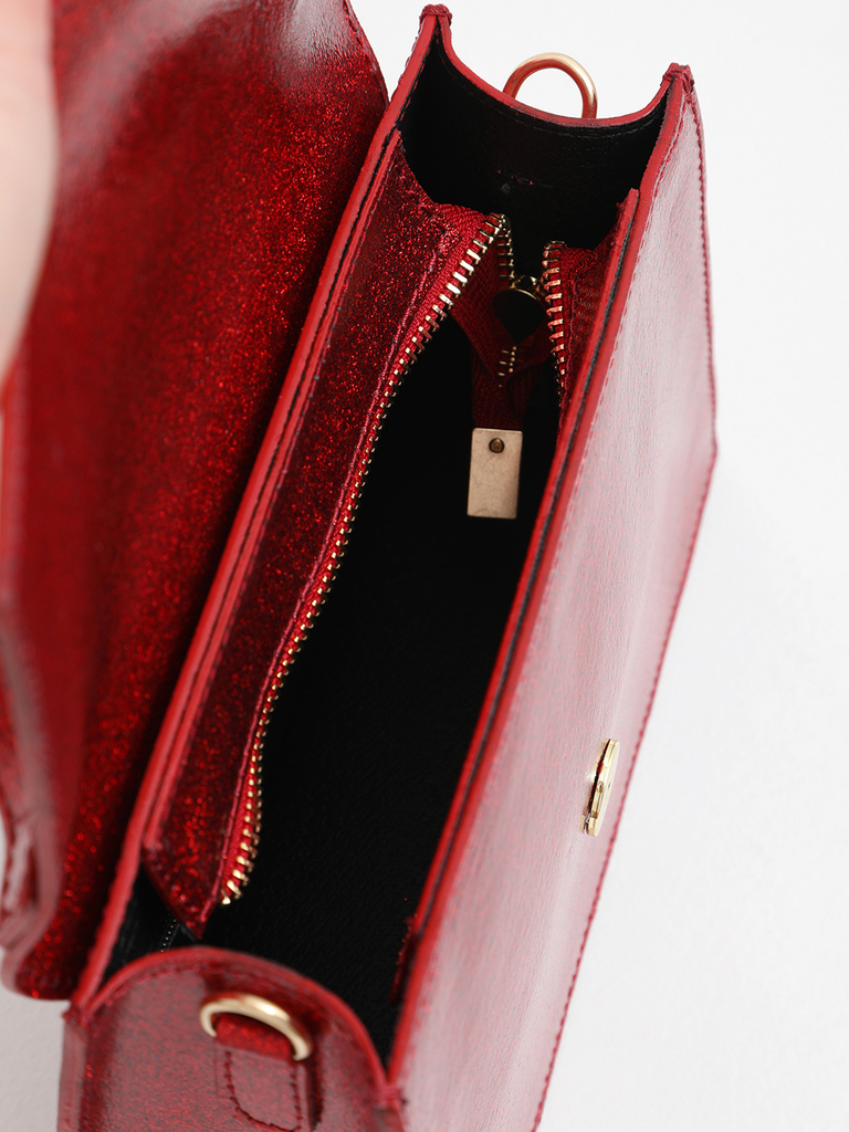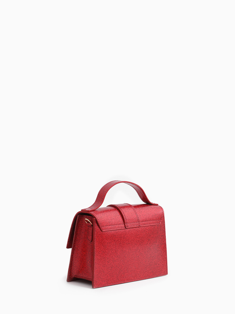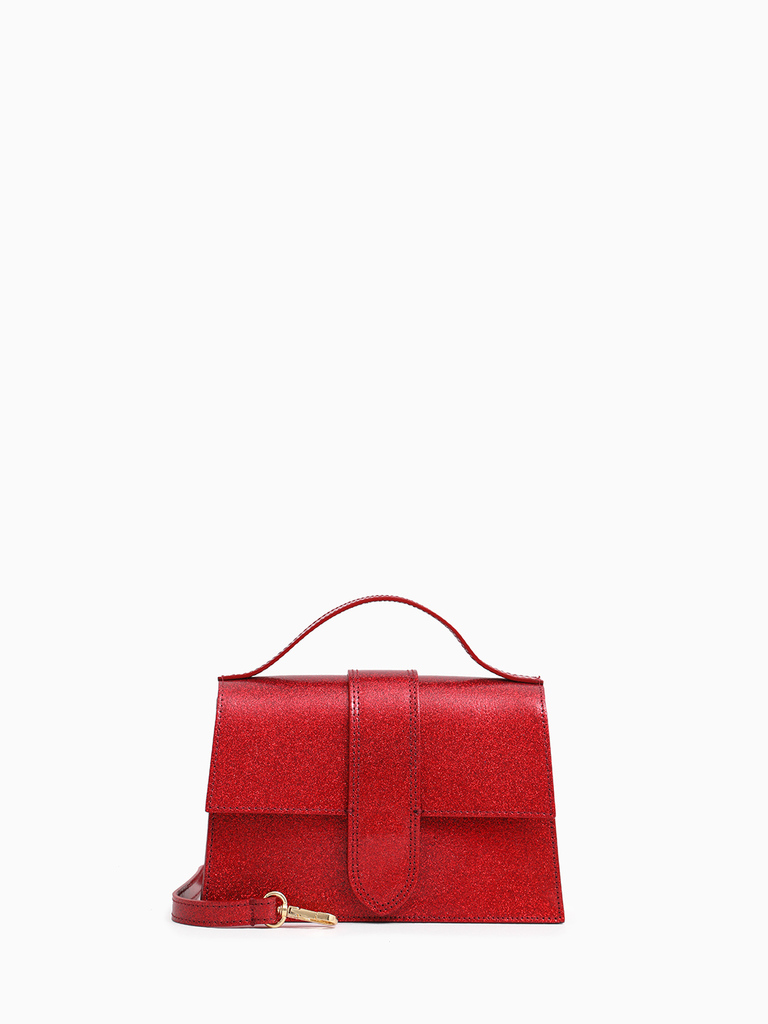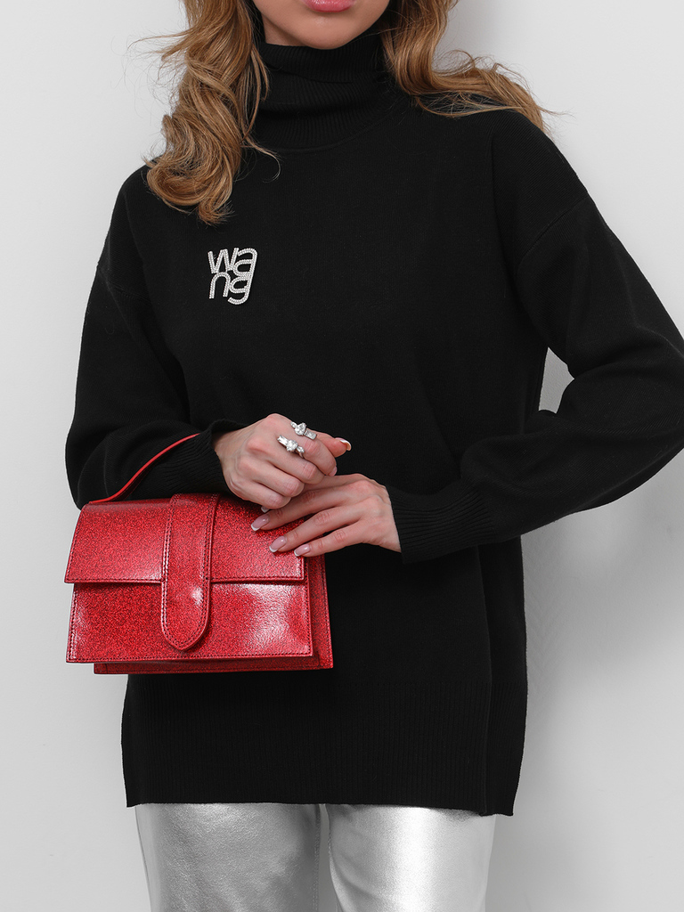 Небольшой сэтчел с глиттером от BE NICE в красном цвете Материал: натуральная кожа Размеры: Длина по дну: 23 см Длина по верхнему краю: 21 см Ширина по дну: 8 см Высота: 15 см Высота с ручкой: 21см Оп... Показать описаниеисание: Небольшой сэтчел от итальянского бренда BE NICE выполнен из лаковой натуральной кожи с глиттером, декорирован фирменной строчкой. Данная модель закрывается на молнию и клапаном на магнитную кнопку, носится на сгибе руки, в руке или на плече на ремне, максимальная длина которого - 139 см (регулируется) Внутри: одно отделение, боковой карман на молнии Производитель: BE NICE, Италия Расположение производства: Италия