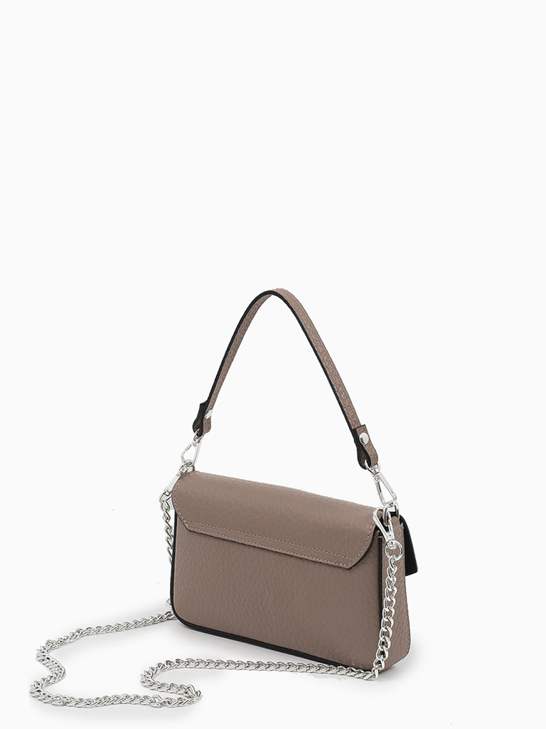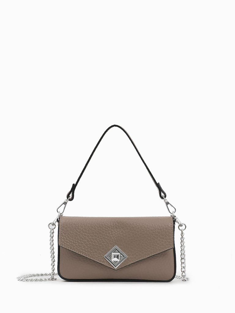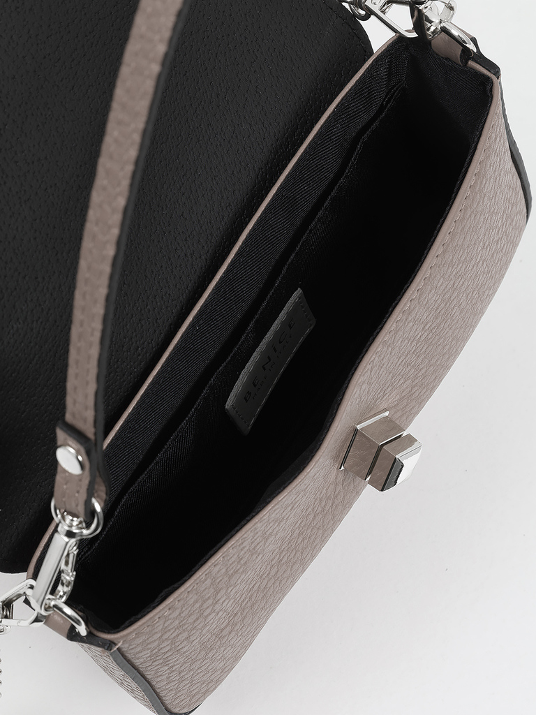 Клатч из натуральной кожи цвета тауп с серебристой фурнитурой от BE NICE Материал: натуральная кожа Размеры: Длина по дну: 21 см Длина по верхнему краю: 21 см Ширина по дну: 3 см Высота: 12 см (сбоку)... Показать описание Общая высота с цепочкой: 70 см Описание: Сумка итальянского бренда BE NICE выполнена из натуральной кожи. Данная модель закрывается клапаном на поворотную фурнитуру, носится как клатч, на плече или через плечо на цепочке, максимальная длина которой - 119 см (не регулируется) Внутри: сбоку отделение на молнии для мелочей Производитель: BE NICE, Италия Расположение производства: Италия