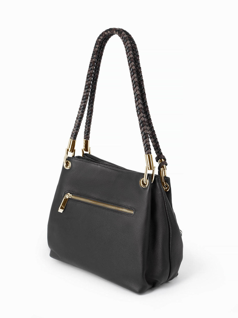 Шоппер с длинными плетёными ручками от Alessandro Beato из кожи черного цвета Длина сумки Алессандро Беато (Alessandro Beato) - 29 см (по дну), 24 см (по верхнему краю), ширина по дну - 13 см, высота ... Показать описание- 25 см, общая высота с ручками - 42 см. Сумочка состоит из трех автономных отделений, центральное закрывается на молнию, боковые на магнитные кнопки. Внутри сбоку отделение на молнии, карманы для мелочей. Снаружи сзади карман на молнии. Сумочка носится на плече или на сгибе руки. Удобная практичная повседневная сумочка!