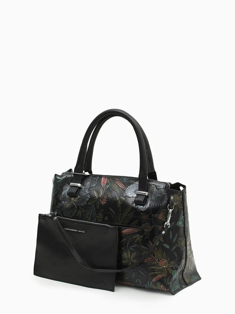 Тоут с цветочным тиснением и металлическими буквами Alessandro Beato в черном цвете Материал: натуральная кожа Размеры: Длина по дну: 32 см Длина по верхнему краю: 30 см Ширина по дну: 13 см Высота: 2... Показать описание5 см Общая высота с ручками: 39 см Описание: Классическая сумка-тоут от итальянского бренда Alessandro Beato выполнена из натуральной буклированной 3D кожи, декорирована цветочным тиснением. Данная модель закрывается на молнию, носится на плече, на сгибе руки или в руке Внутри: центральное отделение на молнии, боковой карман для документов на молнии, карманы для мелочей Снаружи: на передней стенке расположен карман на молнии. На дне металлические ножки Дополнительно: длинный ремень на плечо, максимальная длина - 120 см (регулируется) Производитель: Alessandro Beato, Италия Расположение производства: Китай