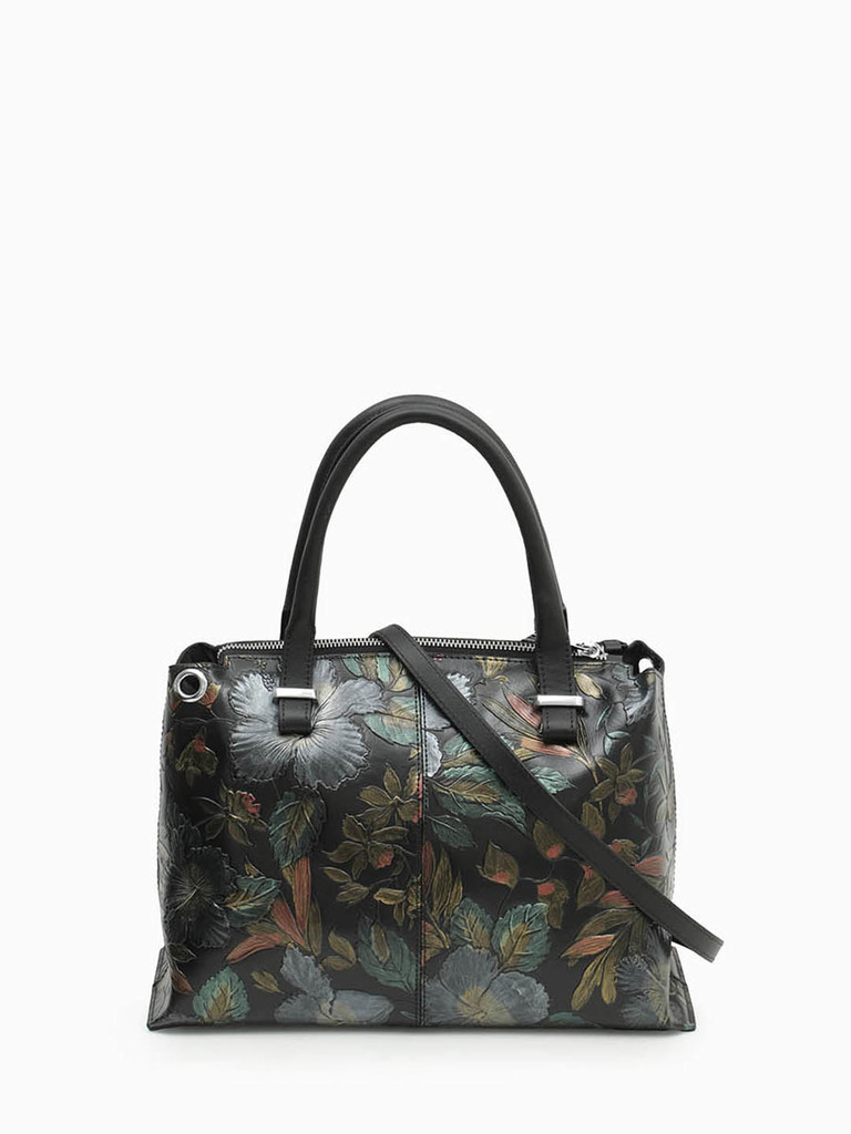Сумка с ручкой с серебристыми люверсами и цветочным тиснением от Alessandro Beato чёрного цвета Материал: натуральная кожа Размеры: Длина по дну: 24 см Длина по верхнему краю: 21 см Ширина по дну: 10,... Показать описание5 см Высота: 22 см Общая высота с маленьким ремнём: 33 см Описание: Лаконичная кросс-боди от итальянского бренда Alessandro Beato выполнена из натуральной кожи, декорирована объёмным тиснением и логотипом бренда. Данная модель закрывается на молнию и на магнитную кнопку, носится на плече или в руке Внутри: одно отделение, боковой карман для документов на молнии, карман для мелочей Дополнительно: прилагается два ремня: короткий ремень на плечо - 44 см (не регулируется), длинный ремень на плечо - 80 см (не регулируется) Производитель: Alessandro Beato, Италия Расположение производства: Китай