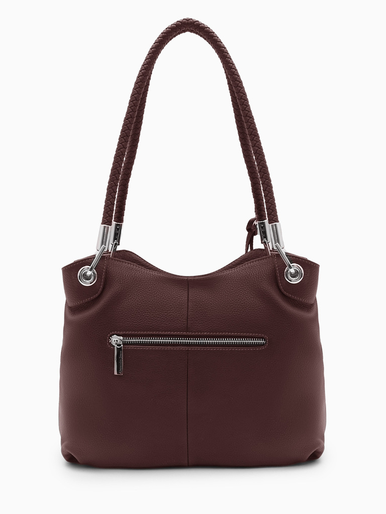 Шоппер с длинными плетёными ручками от Alessandro Beato из натуральной кожи бордового цвета Длина сумки Алессандро Беато (Alessandro Beato) - 33 (30) см, ширина по дну - 15 см, высота - 27 см, общая в... Показать описаниеысота - 57 см. Сумочка выполнена из буклированной кожи - хит продаж этого и прошлых сезонов! Сумочка закрывается на молнию. Внутри центральное отделение на молнии, сбоку карман на молнии, карманы для мелочей. Снаружи сзади карман на молнии. Сумочка носится на плече.