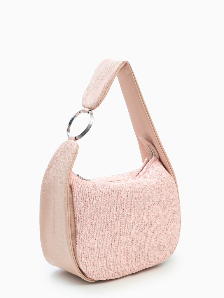 Небольшая сумка-хобо с металлическим кольцом на ручке от ARCADIA из натуральной кожи и рафии пудрового оттенка Материал: натуральная кожа / рафия Размеры: Длина по дну: 28 см Длина по верхнему краю: 2... Показать описание7 см Ширина по дну: 12 см Высота: 26 см Общая высота с ручкой: 48 см Описание: Небольшая сумка-хобо от итальянского бренда ARCADIA выполнена из натуральной кожи и соломки рафии, декорирована металлическим кольцом на ручке и серебристой фурнитурой. Данная модель закрывается на молнию, носится на сгибе руки или в руке Внутри: боковой карман для документов на молнии, карманы для мелочей Снаружи: на дне металлические ножки Производитель: Arcadia s.r.l., Италия Расположение производства: Италия