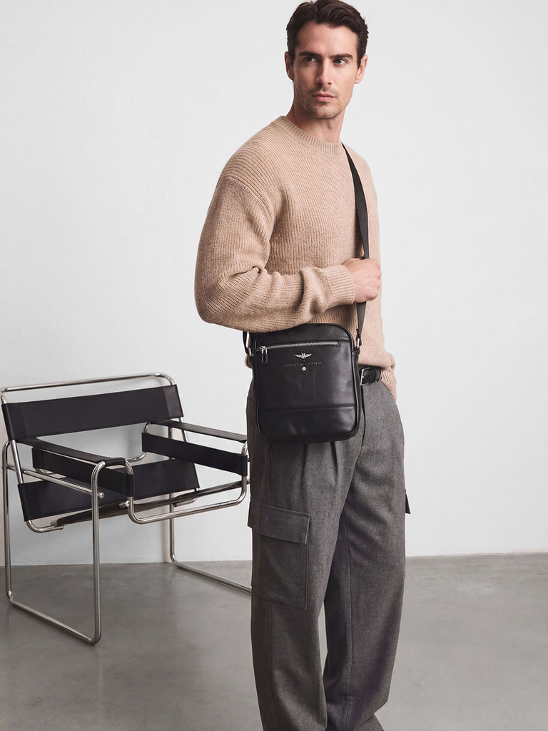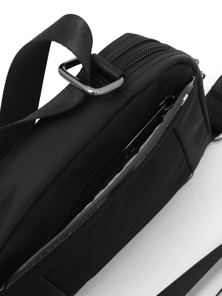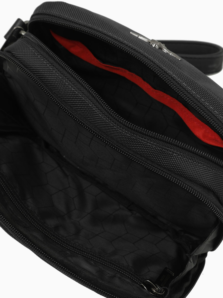Мужская барсетка-клатч от AERONAUTICA MILITARE с длинным ремнем и ручкой на запястье черного цвета Материал: полиэстер/полиуретан Размеры: Длина по дну: 22 см Длина по верхнему краю: 22 см Ширина: 6 с... Показать описанием Высота: 14 см Описание: Мужской клатч от бренда AERONAUTICA MILITARE выполнен из полиэтера, декорирован фирменным логотипом бренда. Данная модель состоит из двух автономных отделений, каждое закрывается на молнию. Прилагается длинный регулируемый текстильный ремень на плечо. Внутри: боковой карман на молнии и отделение для мелочей Снаружи: спереди отделение на молнии Производитель: AERONAUTICA MILITARE, Италия Расположение производства: Китай