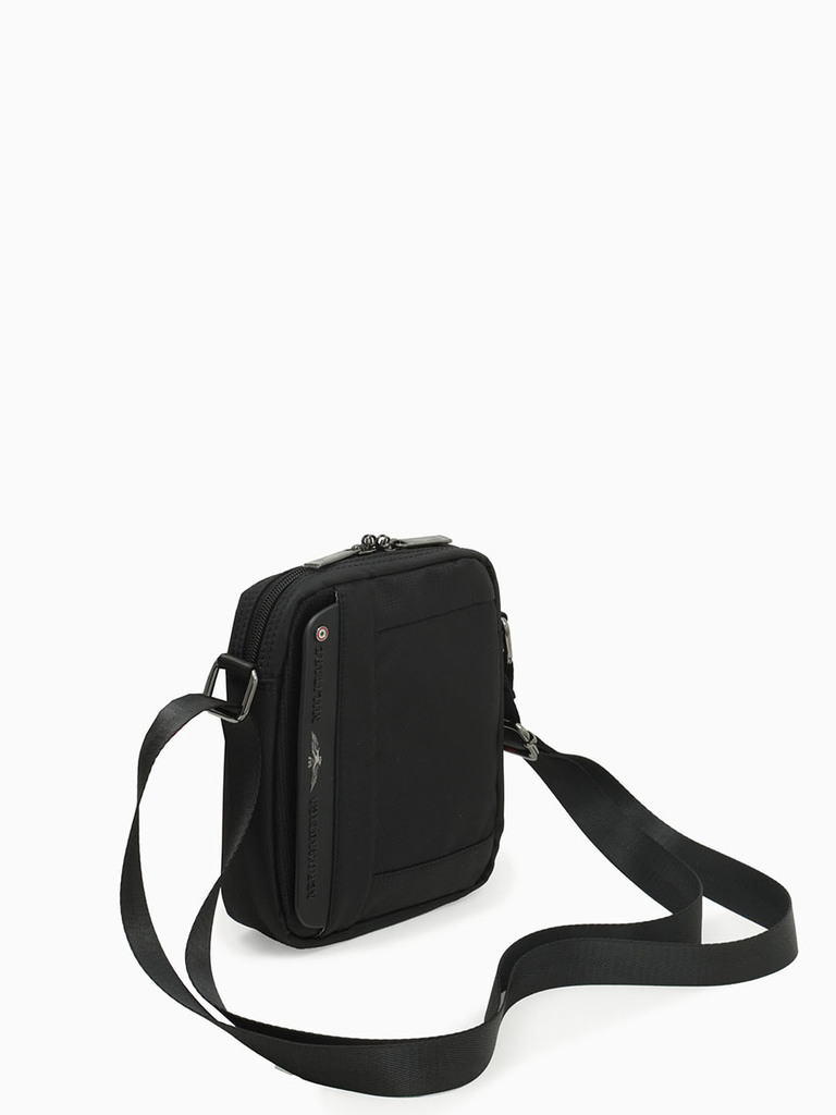 Мужская барсетка на плечо от AERONAUTICA MILITARE черного цвета Материал: экокожа Размеры: Длина по дну: 21 см Длина по верхнему краю: 21 см Ширина: 8 см Высота: 25 см Описание: Мужская сумка от бренд... Показать описаниеа AERONAUTICA MILITARE выполнена из экокожи, декорирована фирменным логотипом бренда. Данная модель закрывается на молнию. Прилагается длинный регулируемый текстильный ремень на плечо. Внутри: боковой карман на молнии и отделение для мелочей Снаружи: спереди и сзади отделения на молнии Производитель: AERONAUTICA MILITARE, Италия Расположение производства: Китай