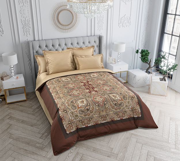 Материал: Сатин Состав: 100 % хлопок Размер пододеяльника: 215х185 (1 шт) (молния ) Размер наволочек: 70х70 (2 шт) и 50х70 (2 шт) (клапан ) Размер простыни: 240х250 (1 шт) (без резинки ) Ткань: Сатин ... Показать описаниеПлотность ткани: 120г/м2 Линейная плотность: 300 ТС Состав ткани: 100 % хлопок Упаковка: Подарочная коробка Комплектация (что входит и в каком количестве): 1 пододеяльник, 1 простыня, 4 наволочки Отображать Новинку на Главной сайта: Нет Цвет: коричневый Рисунок: Восточноесолнцецифра Стиль: современный стиль Сезон: Всесезонное Торговая марка: Legends Бренд производителя: Текс-Дизайн Производитель ткани: Пакистан Производство изделия (страна): Россия Вес брутто в индивидуальной упаковке: 2.6 Размер групповой упаковки: 34х44х33 см Количество в групповой упаковке: 3 шт Комплектация товара и расположение рисунка могут отличаться от представленной фотографии. Цвет ткани может незначительно отличаться от фото. Комплект постельного белья мако-сатина из длинно-волокнистого пакистанского хлопка высшего качества. Сатиновое плетение придает ткани мягкость, шелковистость, эластичность и благородный блеск. Плотность 300ТС. Чем выше плотность нитей, тем ткань тактильно шелковистее. Состав 100% хлопок. Дизайн исполнен в уникальной технике монораппорт: Если рисунок обычной ткани повторяется с большей или меньшей частотой, то дизайны пододеяльников Legends представляют собой единое художественное полотно. В коллекции Legends вы найдете утонченные детали премиального постельного белья. Пододеяльник имеет скрытую молнию со специальным карманом для бегунка, молния расположена снизу. Простыня бесшовная, без резинки, прошита с четырех сторон с имитацией евро-угла. Наволочки с широким запахом 25 см, клапан находится сбоку. Пододеяльник и наволочки декорированы ушками 5 см и плоским контрастным сатиновым кантом. Припуски швов скрыты внутри изделия. Строчка выполнена мелким стежком не более 3 мм, что обеспечивает повышенную прочность и эстетичное восприятие. Комплект упакован в подарочную коробку.Подробное описание на сайте.