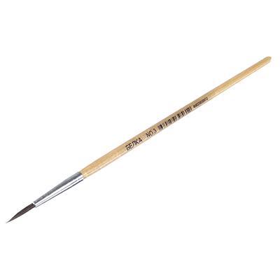 Кисть художественная №3, наконечник из волоса Белки, деревянная ручка, метал.оплетка, инд.маркировка