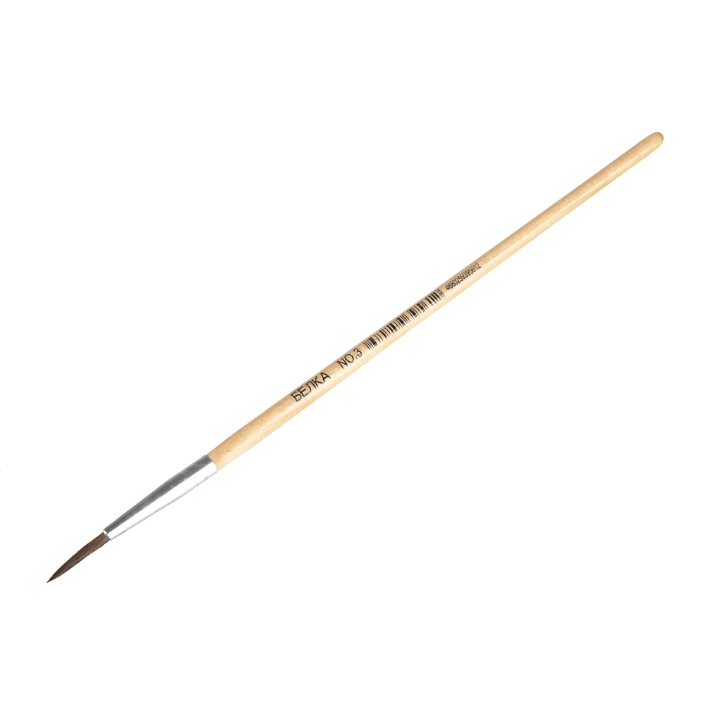 Кисть художественная №3, наконечник из волоса Белки, деревянная ручка, метал.оплетка, инд.маркировка Вопросы по товару