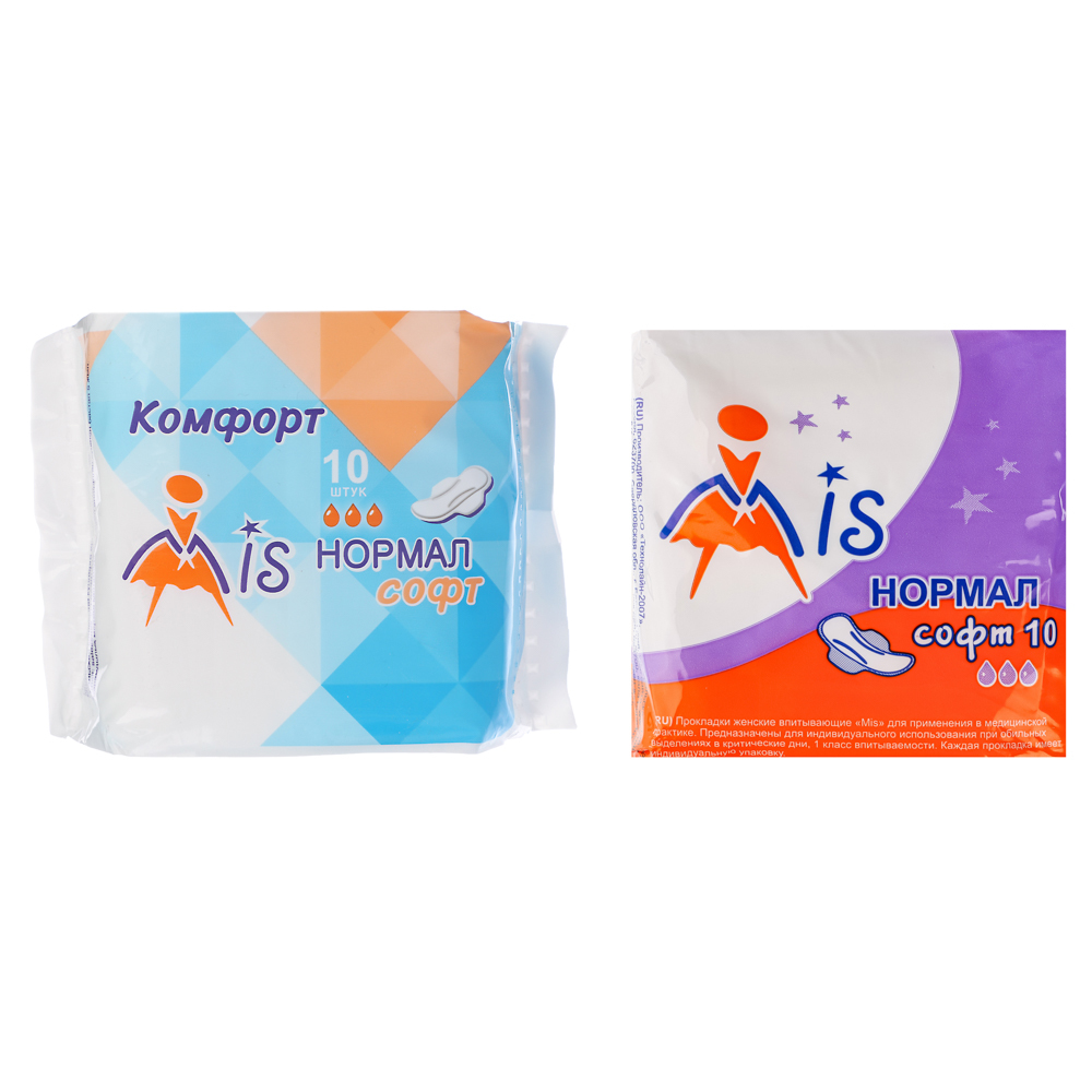 Прокладки гигиенические Mis нормал софт, 3 капли, п/э, 10 штПрокладки гигиенические Mis нормал софт, 3 капли, п/э, 10 шт
