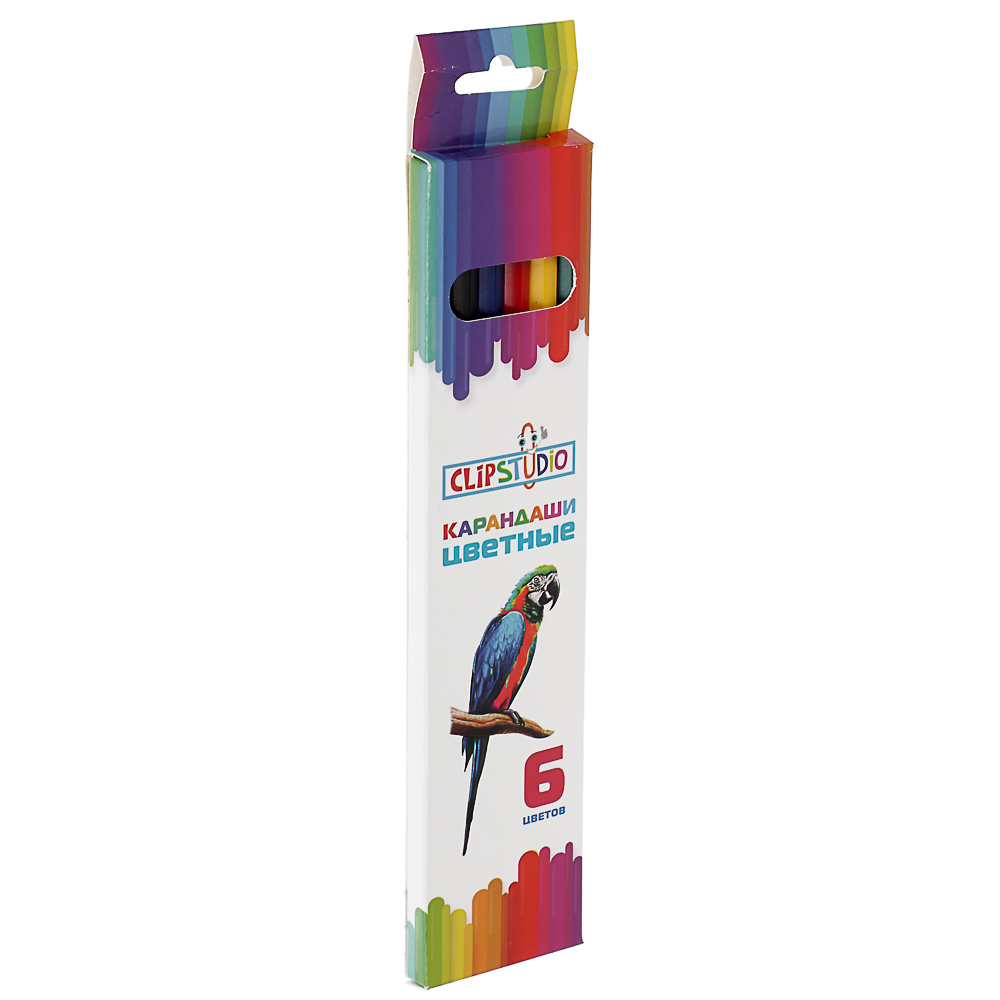 Карандаши 6цв. ClipStudio шестигранные заточ., пластик, в карт.кор. с подвесомКарандаши 6цв. ClipStudio шестигранные заточ., пластик, в карт.кор. с подвесом