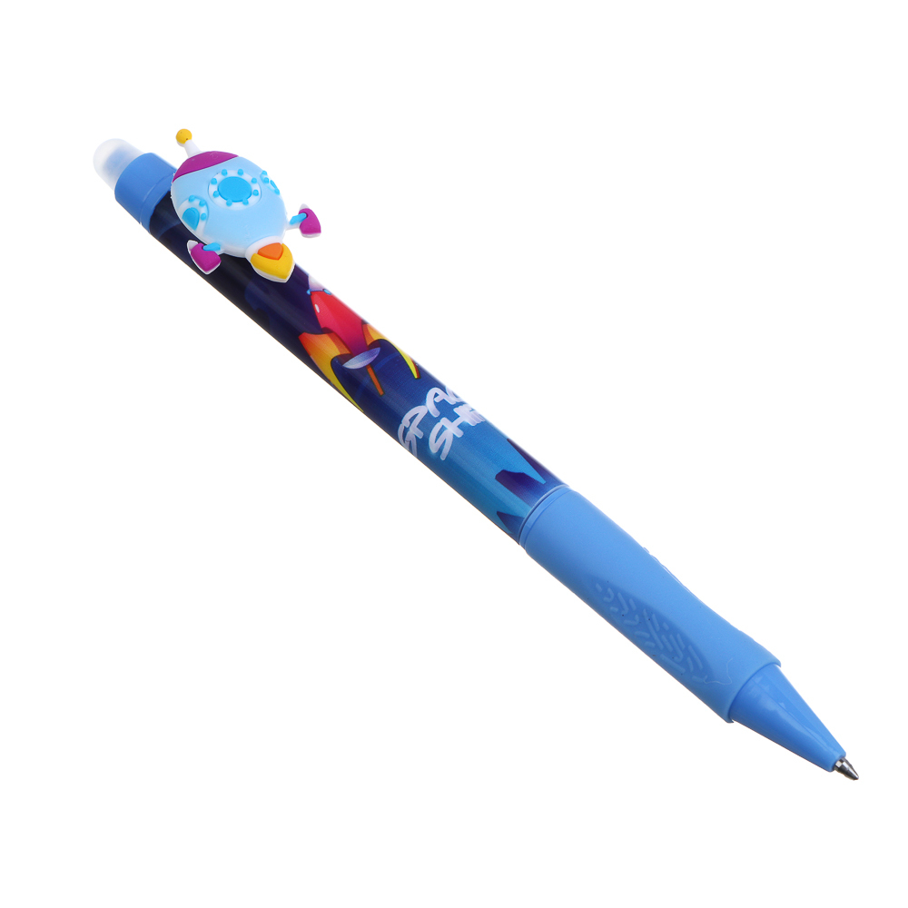 Авторучка гелевая "пиши-стирай" синяя, с кнопкой-фигуркой "Мальчиковые фигурки", 6 дизайнов