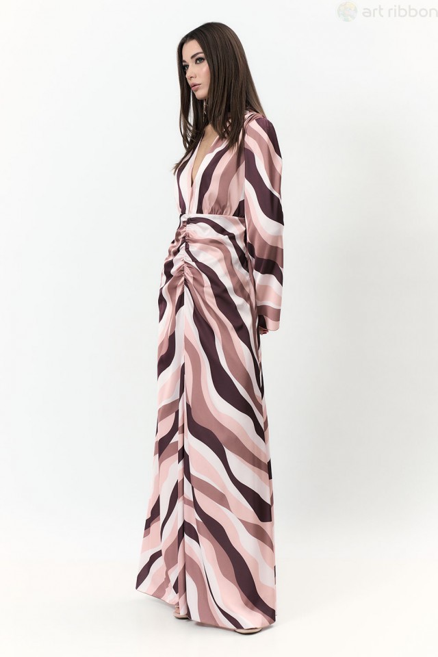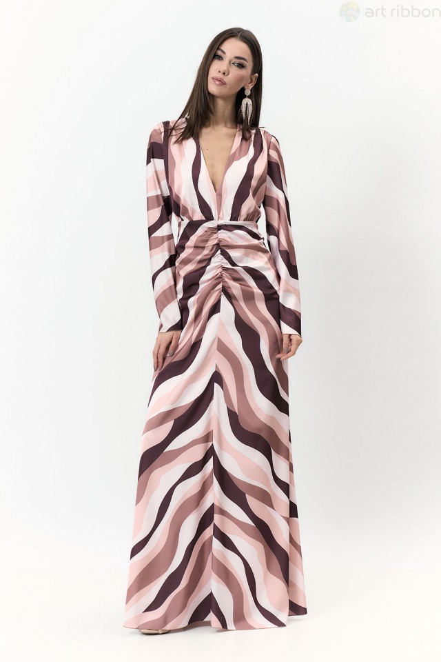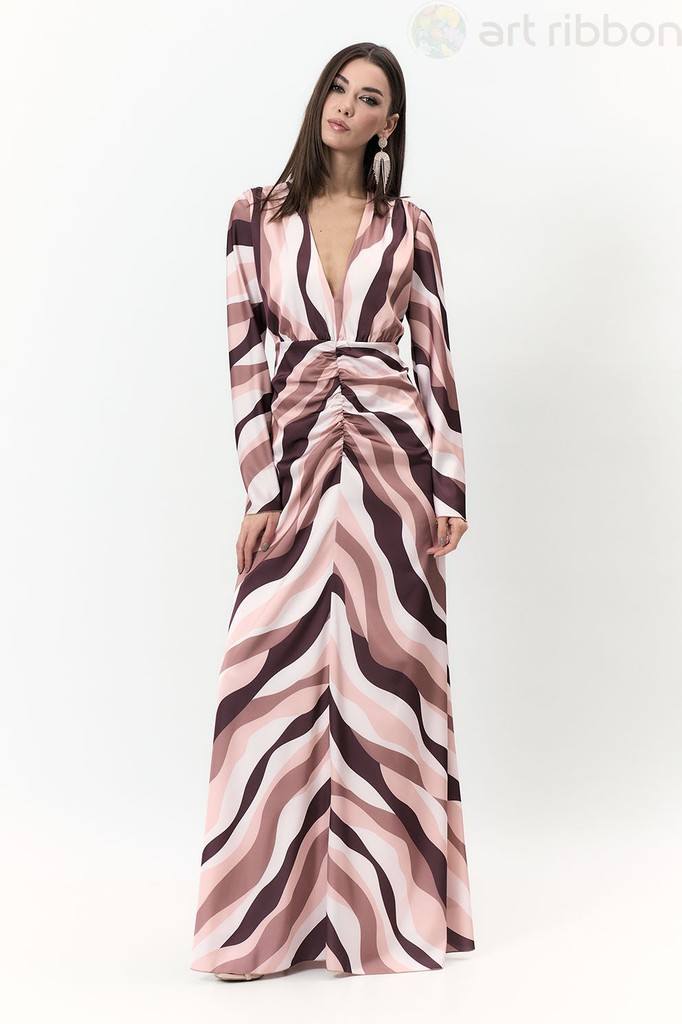 CHIFFON. Возможные размеры: 44-46-48-50-52-54. Нарядное платье длиной maxi с неповторимым дизайнерским принтом сделает Ваш образ незабываемым и ярким. Горловина V-образной формы, рукав длинный, втачно... Показать описанией с манжетой. Платье отрезное по линии талии, на эластичной тесьме. Изделие на подкладке. Возможно отличие фотографии по оттенку, связанное с разной цветопередачей монитора. Состав ткани:Полиэстер: 100%. Длина по центру спинки (см): 154, 154, 154, 154, 154, 154. По груди (см): 48, 50, 52, 54, 56, 58. По талии (см): 48, 50, 52, 54, 56, 58. Длина рукава (см): 65, 65, 65, 65, 65, 65. Ширина рукава (см): 17.6, 18.3, 19, 19.7, 20.4, 21.1. Ширина плеча (см): 10.3, 10.5, 10.7, 10.9, 11.1, 11.3. Ширина спинки (см): 34, 35, 36, 37, 38, 39. Подробное описание: https://artribbon.ru/m1026p-plat-e-zhenskoe.html
