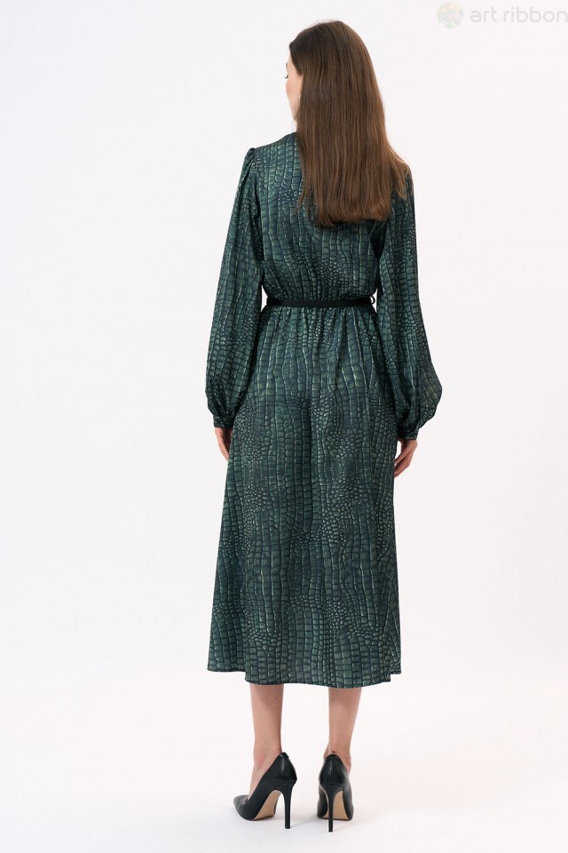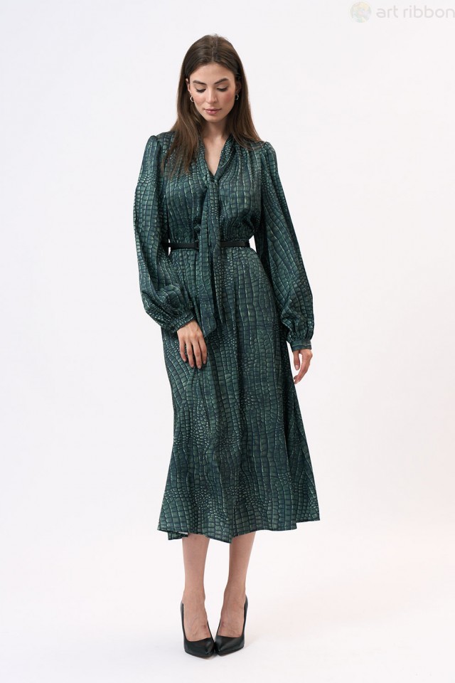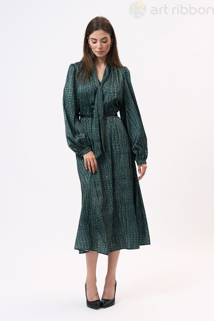 ARMANY. Возможные размеры: 46-48-50-52. Это платье полуприлегающего силуэта изготовлено из легкой шелковистой ткани, что придает ему изысканный и элегантный вид. Оно подчеркнет женственность и изящест... Показать описаниево его обладательницы. Платье имеет отрезную линию талии, которая акцентирует внимание на самой тонкой части фигуры, создавая эффектную силуэтную форму. Эластичная тесьма на талии обеспечивает комфортную посадку и подчеркивает изгибы тела. Горловина платья имеет V-образную форму, что придает ему изысканность и делает его более привлекательным. Этот дизайн акцентирует внимание на шею и декольте, придавая образу женственности и стиля. Длинные втачные рукава платья украшены сборками и манжетами, что добавляет некую игривость и легкость к общему образу. Эти детали делают рукава более объемными и привлекательными, придавая платью неповторимый шарм и элегантность. Важно отметить, что оттенок платья на фотографии может незначительно отличаться из-за цветопередачи монитора. Это платье подходит для различных мероприятий, начиная от вечерних выходов и заканчивая деловыми встречами. . Состав ткани:Вискоза: 50%, Шелк: 30%, Полиэстер: 20%. Длина по центру спинки (см): 127, 127, 127, 127. По груди (см): 51, 53, 55, 57. По бедрам (см): 56, 60, 62. По талии (см): 50, 52, 54, 56. Длина рукава (см): 65, 65, 65, 65. Ширина рукава (см): 21.3, 22, 22.7, 23.4. Ширина плеча (см): 10.5, 10.7, 10.9, 11.1. Ширина спинки (см): 35, 36, 37, 38. Подробное описание: https://artribbon.ru/m1083p-plat-e-zhenskoe.html