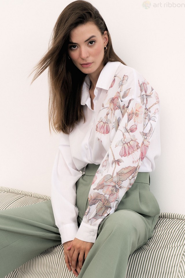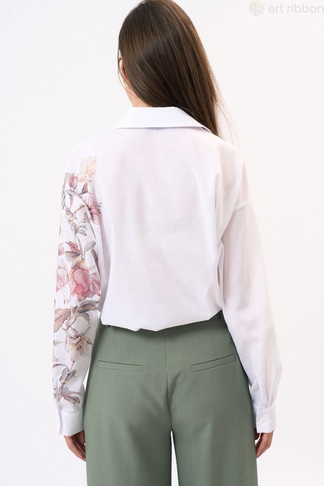 COTTON. Возможные размеры: 44-46-48-50-52-54. Блузка из хлопка - это базовая вещь на протяжении всего года. Данная модель кочует из сезона в сезон и никогда не надоедает. В нашей новой коллекция белая... Показать описание блуза декорирована принтом. Рубашка женская из х/б ткани прямого силуэта в стиле oversize. Рубашка с центральной ботовой застежкой на петли и пуговицы. Воротник рубашечного типа на стойке. Рукав рубашечного типа, заканчивающийся манжетой, застегивающейся на петли и пуговицы. Возможно отличие фотографии по оттенку, связанное с разной цветопередачей монитора. Состав ткани:Хлопок: 82%, Полиэстер: 18%. Длина по центру спинки (см): 67, 67, 67, 67, 67, 67. По груди (см): 55, 57, 59, 61, 63, 65. По бедрам (см): 54, 56, 58, 60, 62, 64. Длина рукава (см): 50, 50, 50, 50, 50, 50. Размер воротника (см): 21.5, 22, 22.5, 23, 23.5, 24. Ширина плеча (см): 24.6, 24.8, 25, 25.2, 25.4, 25.6. Ширина спинки (см): 54, 55, 56, 57, 58, 59. Подробное описание: https://artribbon.ru/m1087t-rubashka-zhenskaja.html