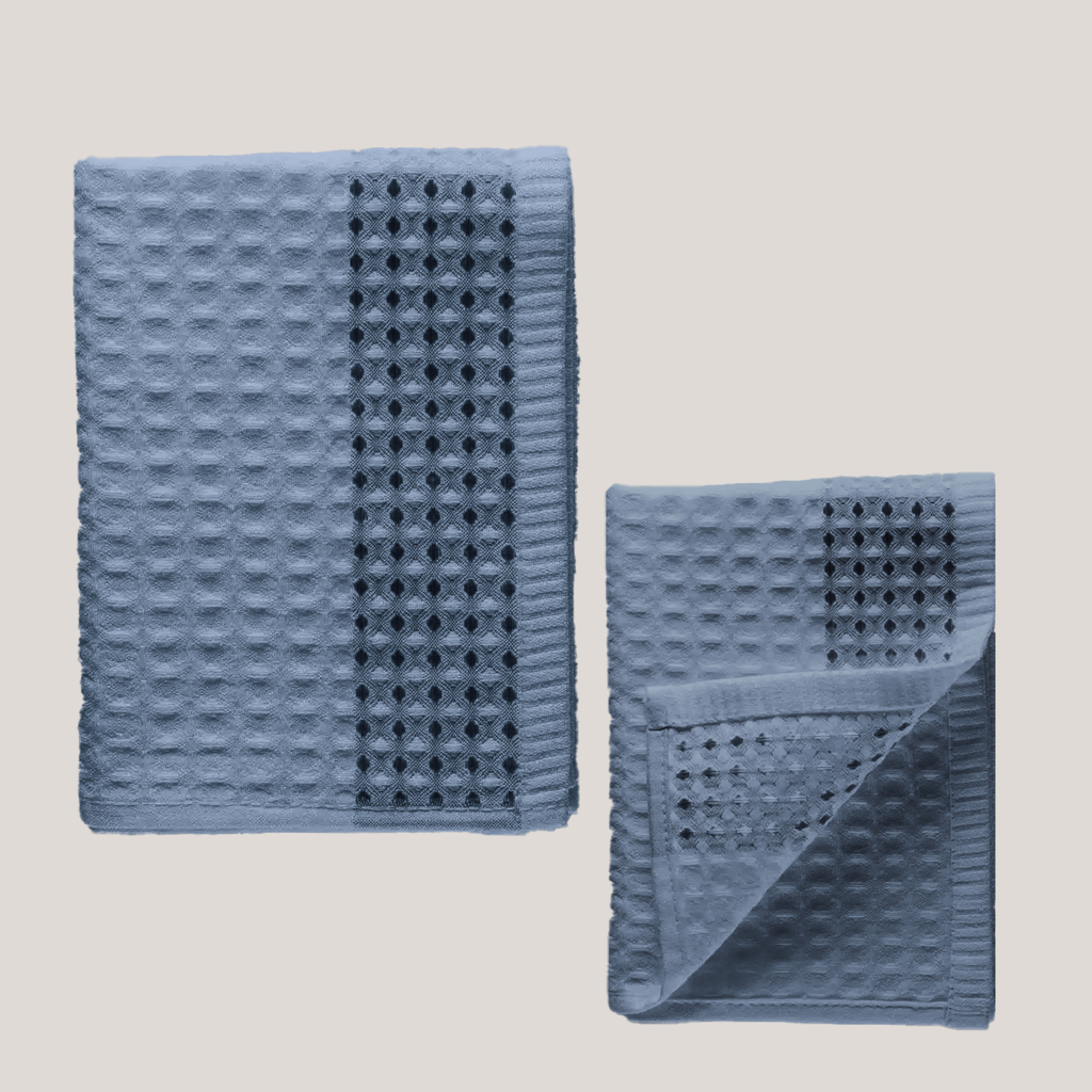 *Комплект махровых полотенец "Fine Line" 30х30 (4 шт.) 2 синих+ 2 голубых, в подарочной корзине