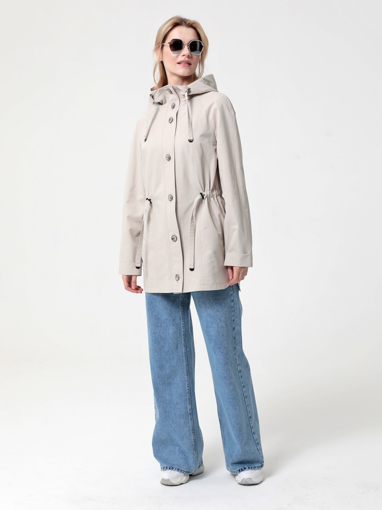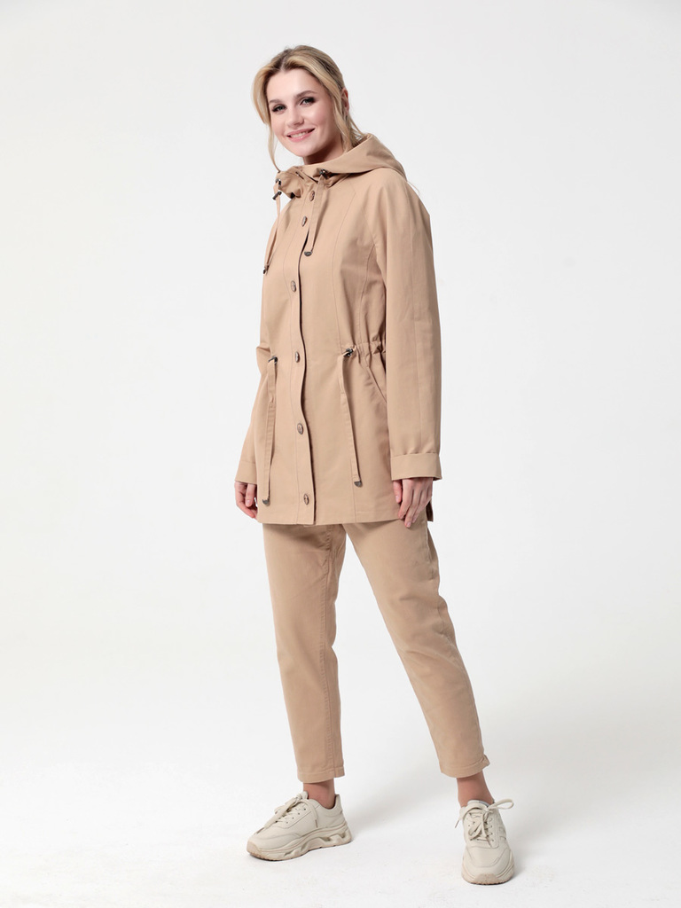 Качество плащика хорошее.Но с размером немного не угадала.Лекала модели рассчитаны на более широкие плечи и полные руки,да и в объемах широковато.У меня 48 в груди, 46 - плечи и бедра.Можно было заказать и 46. заказывать на размер меньше