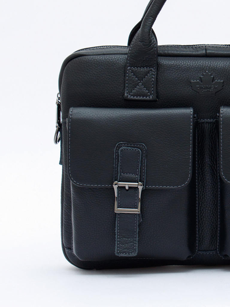 Ширина (см): 2. Длина (см): 34. Высота (см): 24. Вес (г): 700. Бренд: Zinimsk. Материал: Натуральная кожа. Мужской портфель выполнен из натуральной кожи. Дополнен  фурнитурой темное серебро.... Показать описание Данная модель закрывается на молнию. Каркас полужесткий. Носится в руке за встроенные ручки или на плече. В комплекте имеется съемный ремень. Внутри: подкладочная ткань. На боковых частях карман на молнии и без. Снаружи: отдел на молнии. На передней части три кармана на молниях. На задней части так же имеется карман на молнии. Подробное описание: https://www.sumka-style.ru/catalog/muzhskie/sumki/portfeli/33773z-zinimsk-/offer/22513/