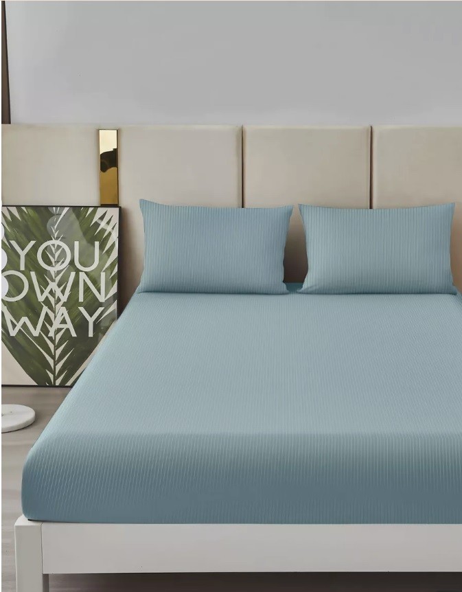 Простыня Страйп Жаккард на резинке Мерцана MERCJ001 (Серо-голубой)Вопросы по товару