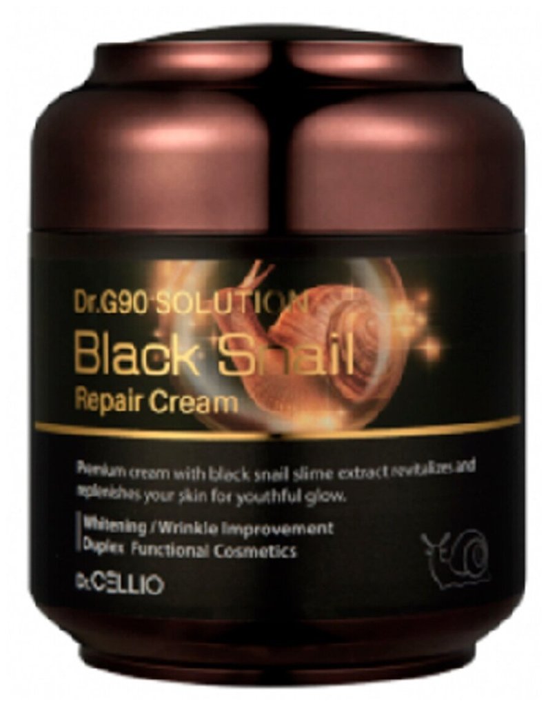 Dr.Cellio G90 Solution Black Snail Repair Cream Крем не оставляет ощущения липкости и быстро впитывается, интенсивно увлажняет обезвоженную кожу, не раздражает ее. Муцин черной улитки обладает уникаль... Показать описаниеными регенерирующим свойством, замедляет инволюционные изменения кожи, восстанавливает микрорельеф, разглаживает морщины, обеспечивает лифтинг-эффект. Подходит ко всем типам кожи. Способ применения: используйте крем на завершающем этапе ухода за кожей. Небольшое количество крема нанесите на очищенную кожу лица, легкими похлопывающими движениями распределите крем до полного впитывания.