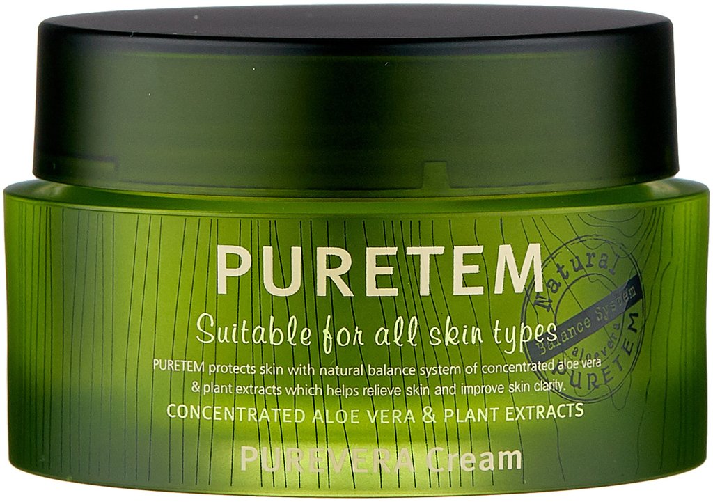 Puretem Purevera Cream Крем для лица с экстрактом алоэ вера Алоэ вера – главный помощник для тех, у кого сухая или чувствительная кожа, проблемная или жирная, а также зрелая и потерявшая упругость кож... Показать описаниеа. Именно в этом заключается ценность этого растения – его универсальность и способность дать коже любого типа именно то, в чем она так нуждается. В составе средства алоэ вера и растительные экстракты, благодаря которым оно интенсивно увлажняет, успокаивает и смягчает кожу, оберегает от пересыхания и появления шелушений, нормализует pH-баланс. Также крем оказывает антибактериальное и противовоспалительное действие, ускоряет заживление акне и предупреждает появление пост-акне, а также новых воспалений. Кроме того, алоэ является природным фотопротектором, защищает кожу от агрессивного воздействия ультрафиолета, предупреждает фотостарение. Способ применения: Нанести на очищенную и тонизированную кожу лица и шеи. Применять утром и/или вечером.