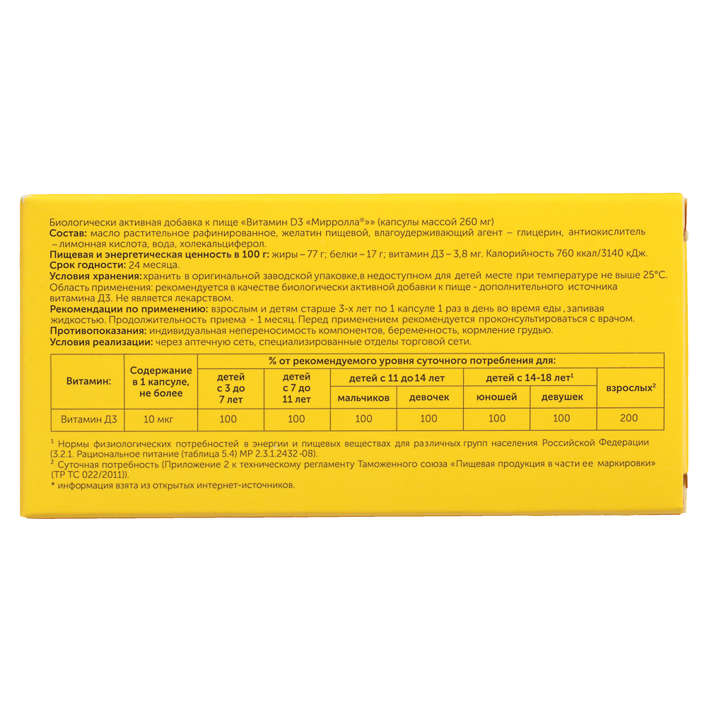 БАД "Витамин D3" Мирролла, 30таблБАД "Витамин D3" Мирролла, 30таблБАД "Витамин D3" Мирролла, 30табл