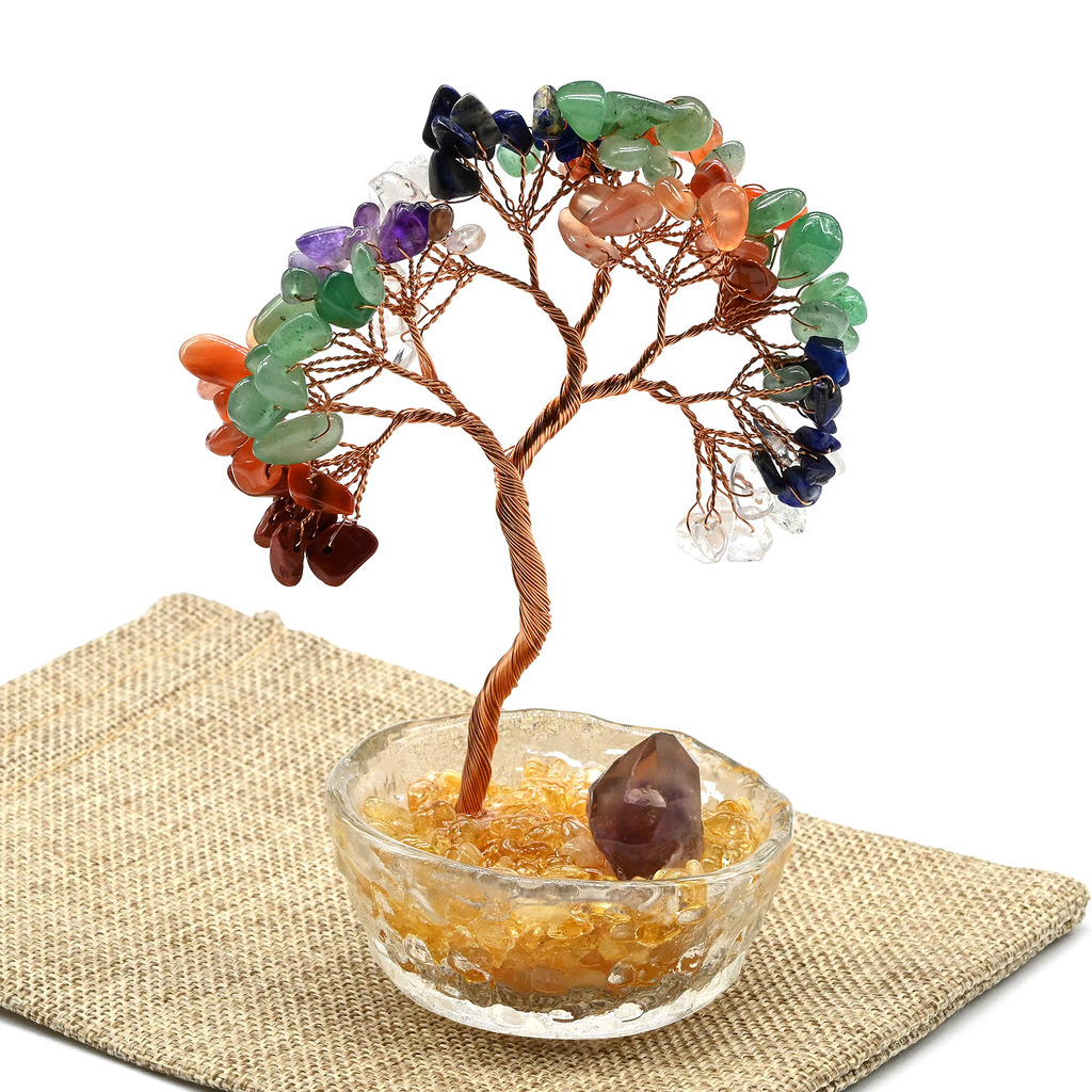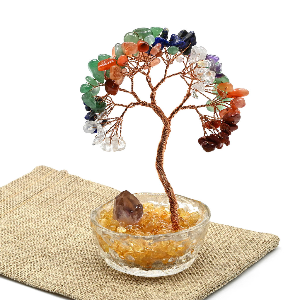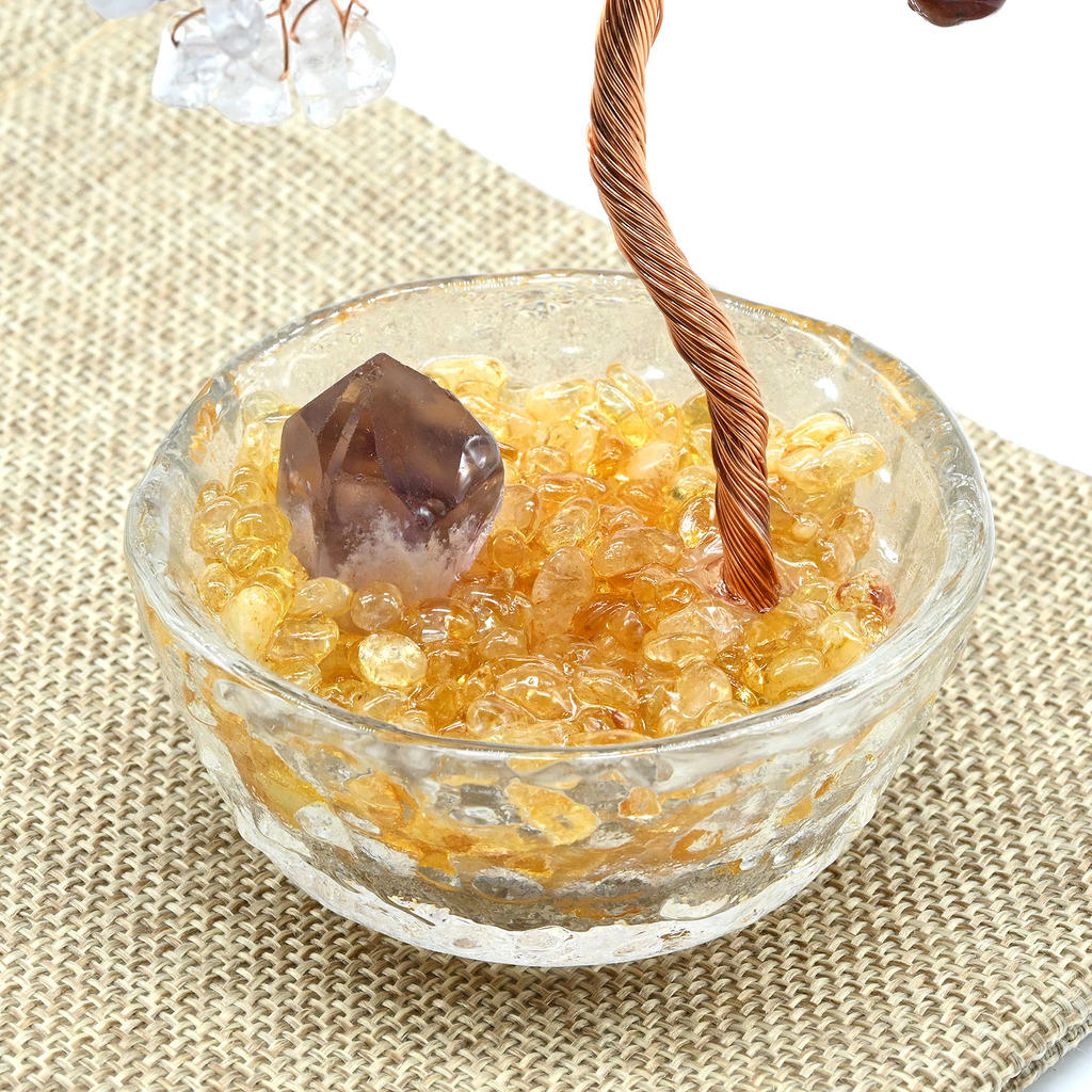 Дерево счастья из камней самоцветов в горшочке с кристаллами 85*85*115мм
