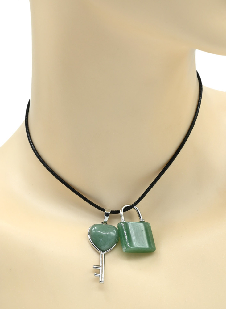 Двойная подвеска Ключ - Замок для влюбленных 17*36мм, 20*26мм с нефритом прессованным