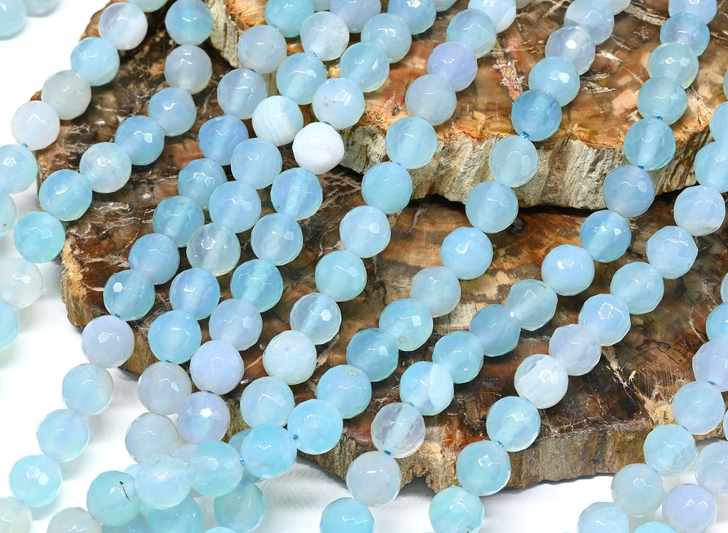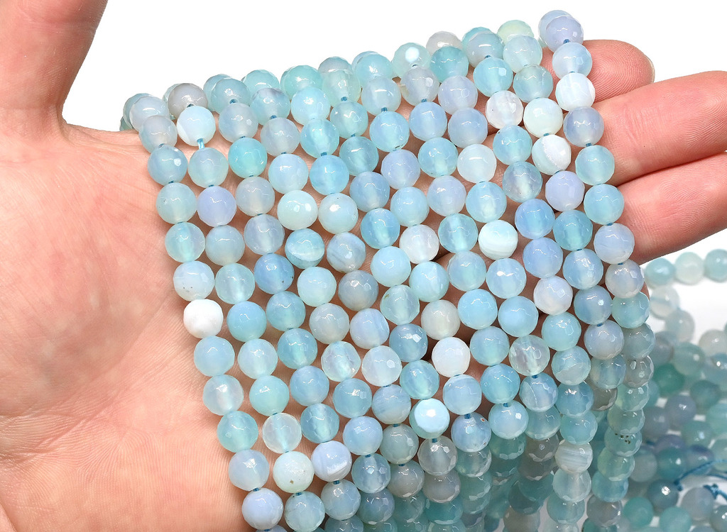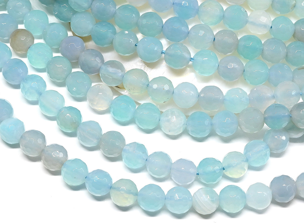 Агат тонированный бусины в форме шарика с гранями 8мм цв.голубой, 38см, 48 бусин. Вопросы по товару