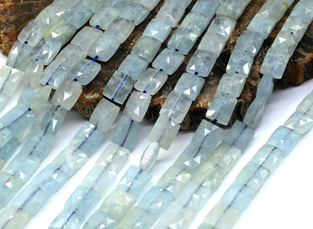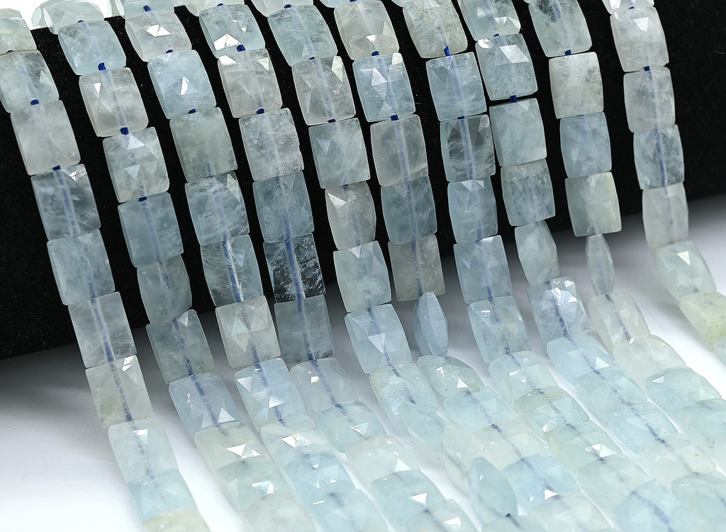 Аквамарин камень прямоугольник с гранями 8*10мм, 37,5см, 37 бусин