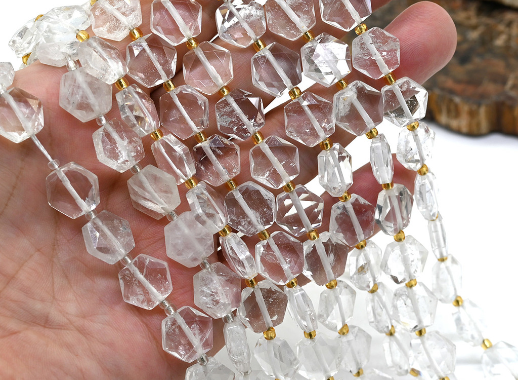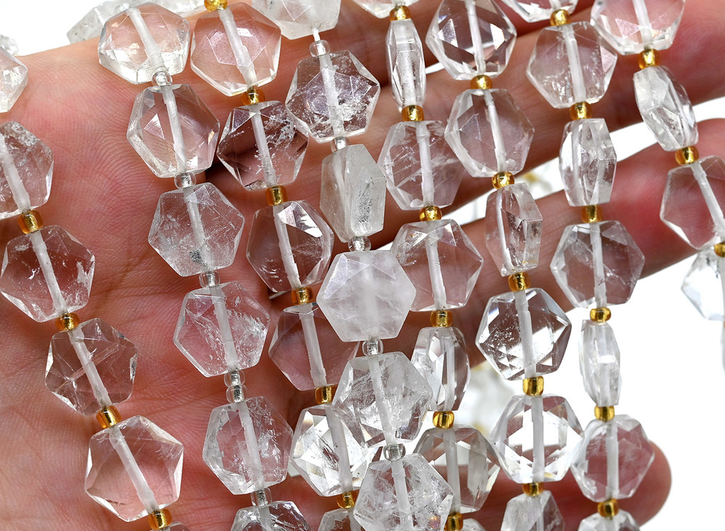 Горный хрусталь бусины шестигранник 13*12мм, 38см, 27 бусинГорный хрусталь бусины шестигранник 13*12мм, 38см, 27 бусинГорный хрусталь бусины шестигранник 13*12мм, 38см, 27 бусин