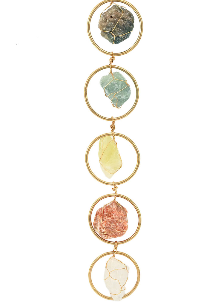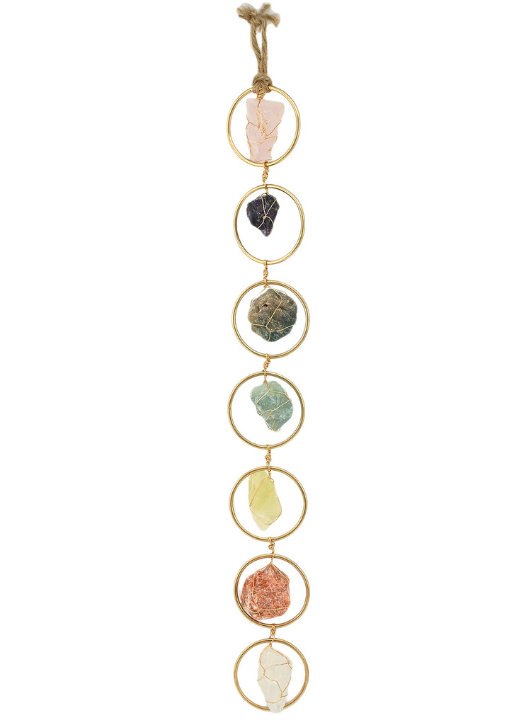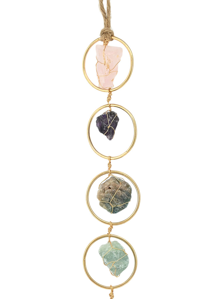 Камень: Самоцветы Натуральность: Натуральный камень Месторождение: Неизвестно Длина мм.: 450 Ширина мм.: 30 Высота мм.: 30 •Подвеска для дома с 7 камнями для гармонизации пространства - это не только ... Показать описаниекрасивое и оригинальное украшение для дома или офиса, но и мощный инструмент для работы с энергетикой. •Идея заключается в том, что каждый из семи камней соответствует одной из семи главных чакр, подобранных по своему цвету и вибрационным свойствам. •Камни находятся в оплетении плотной, прочной нити. •Перед использование новую подвеску нужно очистить от чужой энергии. Можно подержать под проточной водой, окурить дымом шалфея или полыни либо оставит на ночь на подоконнике под светом луны (особенно в полнолуние). •После очищения активизируйте подвеску намерением: возьмите её в руки, согрейте своим теплом и мысленно или вслух озвучьте свое намерение ( например: Я программирую этот талисман для создания баланса и гармонии в помещении а так же на моё духовное развитие ). •Натуральные камни природгой формы: аметист, апатит, горный хрусталь, солнечный камень, розовый кварц, флюорит, цитрин. •Длинна изделия с петелькой и косточками 45-47см. •Средний размер галтовки: 25*30 ± 3мм.