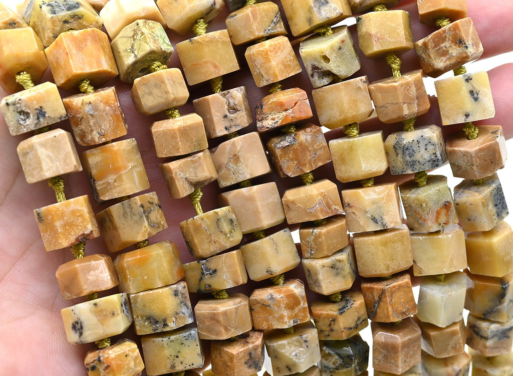 Дендритовый опал желтого цвета шестигранник 14*12*10мм, 41см, 34 бусиныДендритовый опал желтого цвета шестигранник 14*12*10мм, 41см, 34 бусиныДендритовый опал желтого цвета шестигранник 14*12*10мм, 41см, 34 бусины