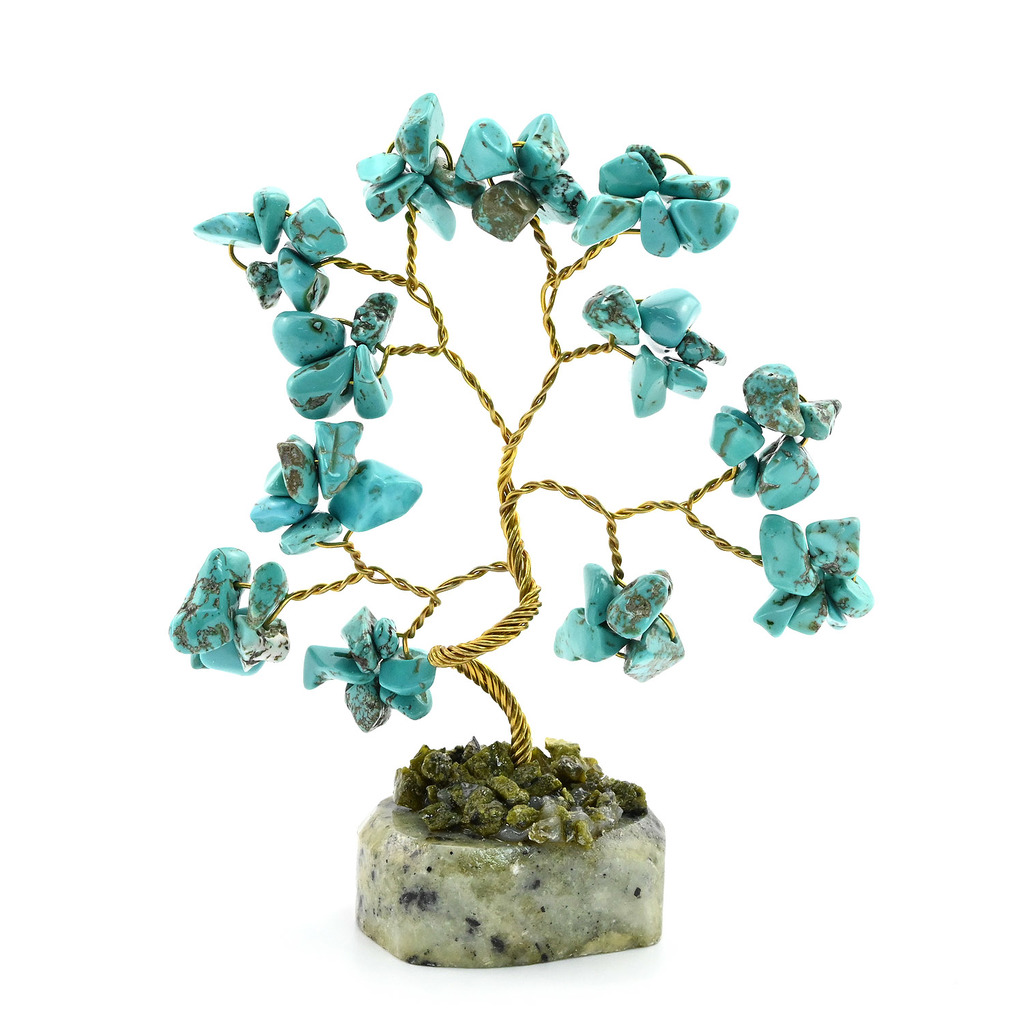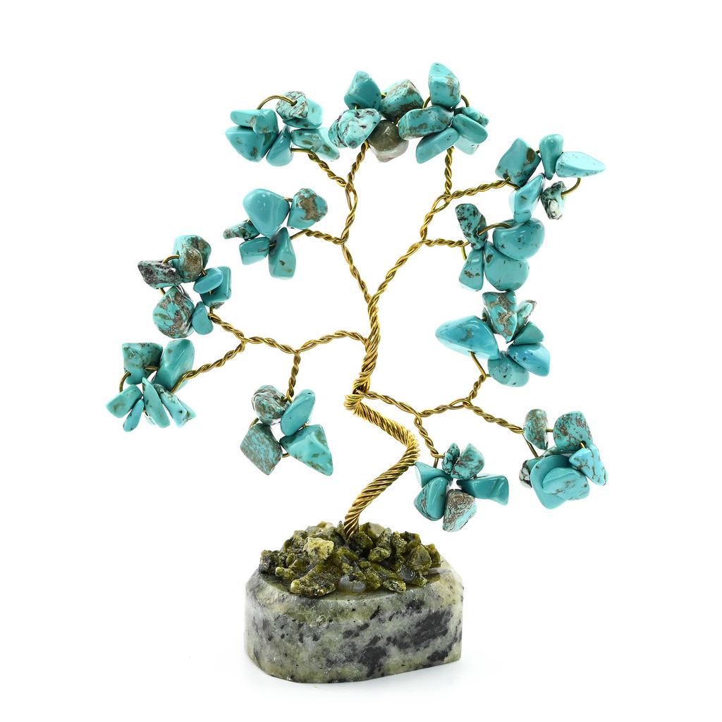 Дерево счастья из бирюзы искуственной на змеевике 35*35*80мм