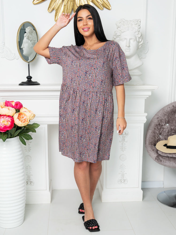 Краткое описание Женская туника, длиной до колен, с рукавом реглан. Туника свободного кроя, с боковыми карманами, отлично подойдет для дома и отдыха. Комфортная посадка, модная длина. Принт, в виде ве... Показать описаниеточки хлопка, добавит образу мягкости и уюта.