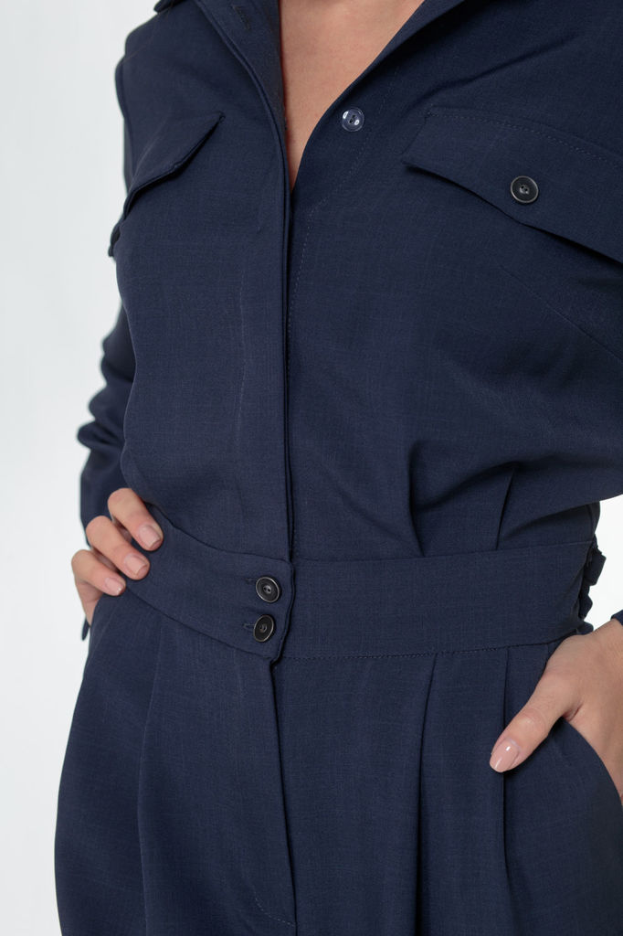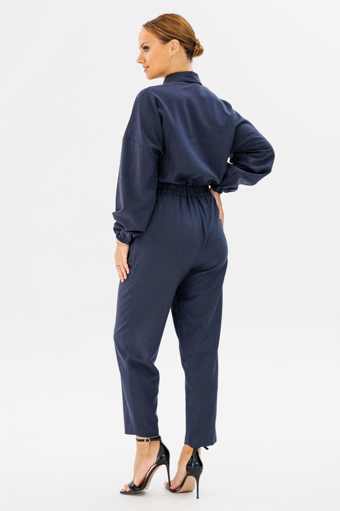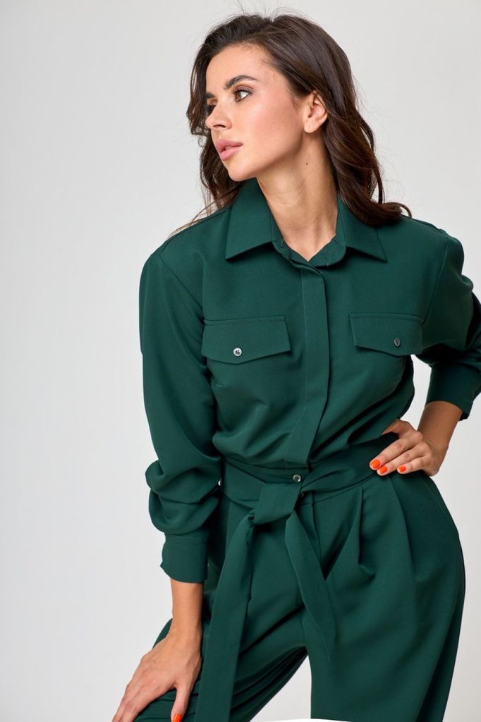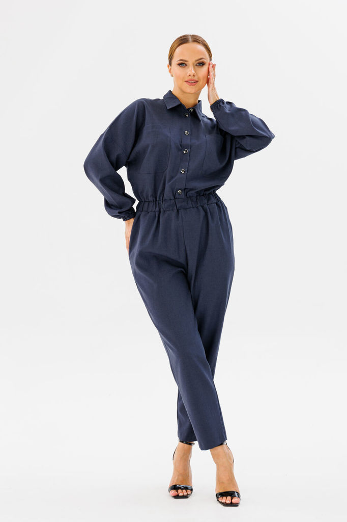Состав: Вискоза-68%; ПЭ-28%; Эластан-4%; Комбинезон из костюмной ткани создает стильный образ как для каждого дня так и для выхода в свет. Комбинезон полуприлегающего силуэта, на передних частях обраб... Показать описаниеотаны нагрудные вытачки и клапаны, потайная застежка планка на петли и пуговицы, спинка с кокеткой, по центру складка на свободу движения. Нижняя часть комбинезона выполнена на широком поясе, по переду заложены складки, застежка «гульфик». Обработаны боковые карманы, на задних частях обработаны талиевые вытачки и клапаны. Воротник рубашечного типа, на стойке. Рукава втачные, длинные, на притачной манжете, с застежкой на петли и пуговицы. В комплекте съемный пояс из основной ткани. Замеры: Рост фотомодели -171 см. Размер фотомодели – 44. ОГ-обхват груди; ОТ-обхват талии; ОБ-обхват бедер; ДИ-длина изделия (длина брюк от талии); ДР-длина рукава (от выреза горловины). Размер 44. ОГ- 100; ОТ-73; ОБ-110; (длина от верхнего края пояса) ДИ-103,5; ДР – 56. Размер 46. ОГ- 104 ОТ-77; ОБ-114; ДИ-104; ДР – 56,5. Размер 48. ОГ- 108; ОТ-81; ОБ-118; ДИ-104,5; ДР – 57. Размер 50. ОГ- 112; ОТ-85; ОБ-122; ДИ-105; ДР – 57,5.