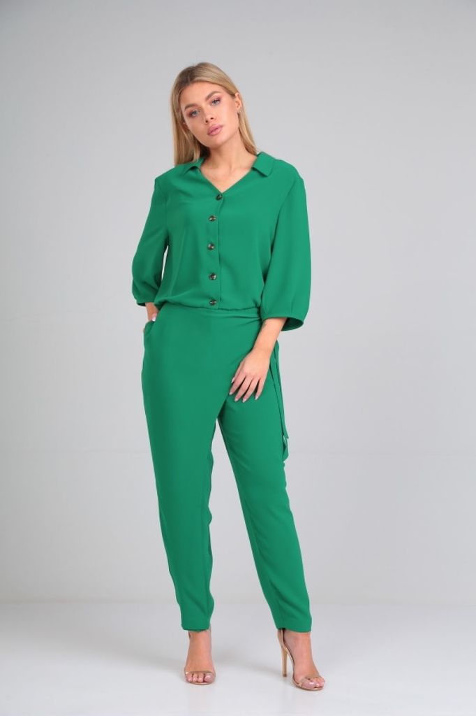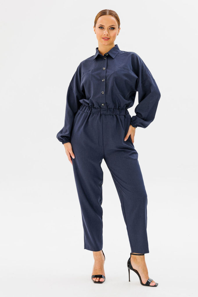 Состав: Вискоза-68%; ПЭ-28%; Эластан-4%; Стильный образ для современной леди! Комбинезон свободного силуэта на резинке. По переду выполнены накладные карманы, по центру застёжка планка на петли и пуго... Показать описаниевицы. Линия плеча спущена Воротник рубашечного типа, на стойке. Рукав свободный, по низу собран на резинку. Нижняя часть - брюки на поясе с резинкой, не сковывает движений. В боковых швах обработаны карманы. В сочетании с правильными аксессуарами может быть и вечерним и повседневным нарядом. Замеры: Рост фотомодели – 171 см. Размер фотомодели – 44 ОГ-обхват груди; ОТ-обхват талии; ОБ-обхват бедер; ДИ-длина изделия (длина брюк от талии); ДР-длина рукава (от выреза горловины). Размер 44. ОГ- 112; ОТ-68; ОБ-104; ДИ-97.5; ДР –74. Размер 46. ОГ- 116 ОТ-72; ОБ-108; ДИ-98; ДР–74.5. Размер 48. ОГ- 120; ОТ-76; ОБ-112; ДИ-98.5; ДР–75. Размер 50. ОГ- 124; ОТ-80; ОБ-116; ДИ-98.5; ДР–75.5.