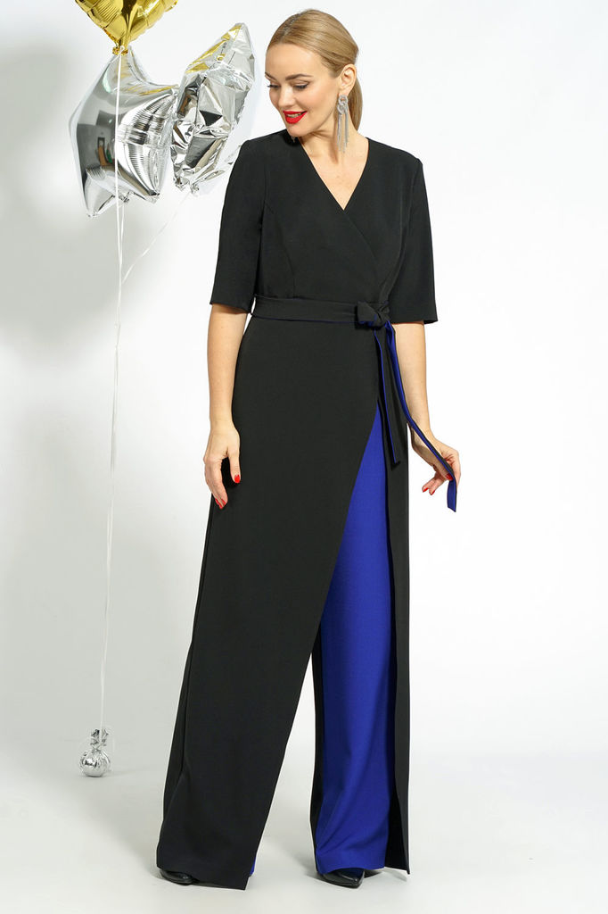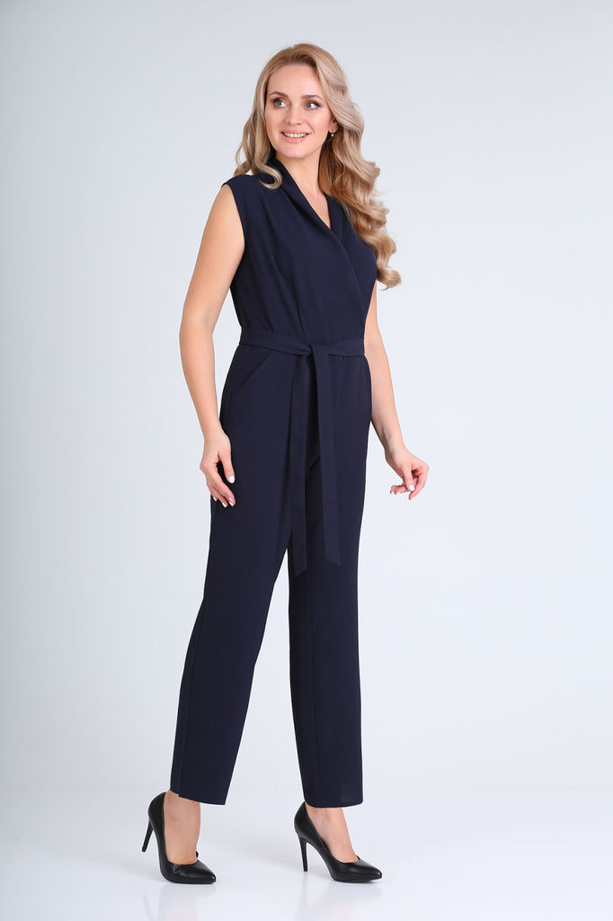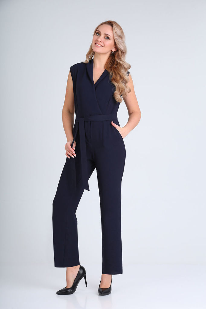 Состав: ПЭ-95%; Эластан-5%; Комбинезон отрезной по линии талии с притачным поясом и съёмным завязывающимся поясом по линии талии. С застёжкой на потайную тесьму-молнию по среднему шву спинки. Лиф пере... Показать описаниеда на запах и с рельефными швами. Лиф спинки с талевыми выточками и средним швом. Брюки полуприлегающие по талии и бёдрам и прямые книзу. По переду отлетные детали вставлены в боковые и по линии талии имитирующие платье. Передние и задние части с талевыми выточками. Передние части брюк и нижняя деталь пояса выполнены из отделочной ткани.