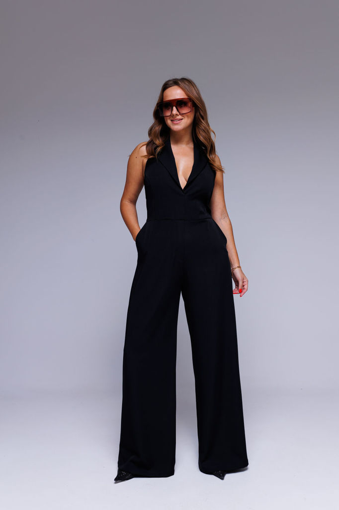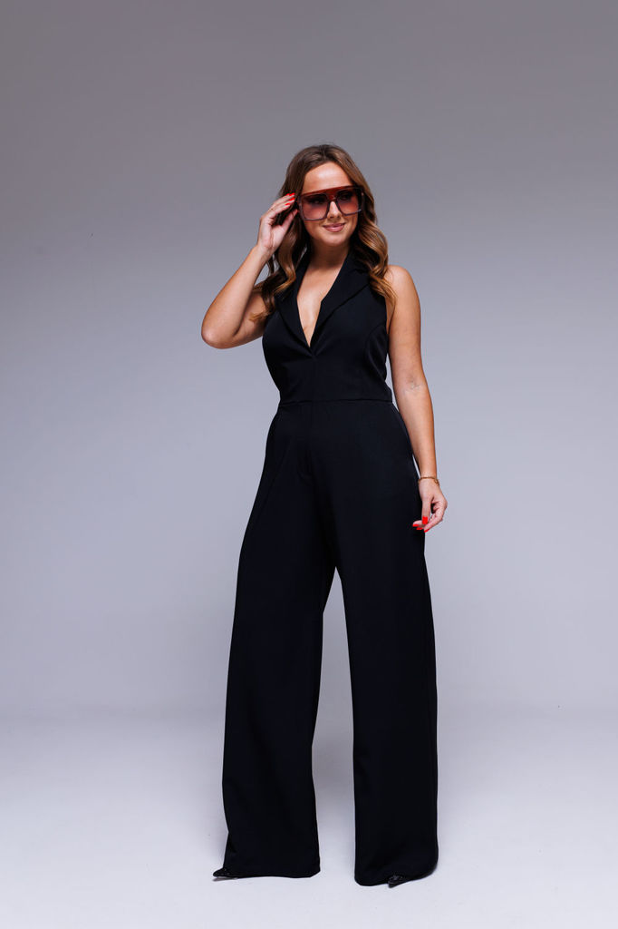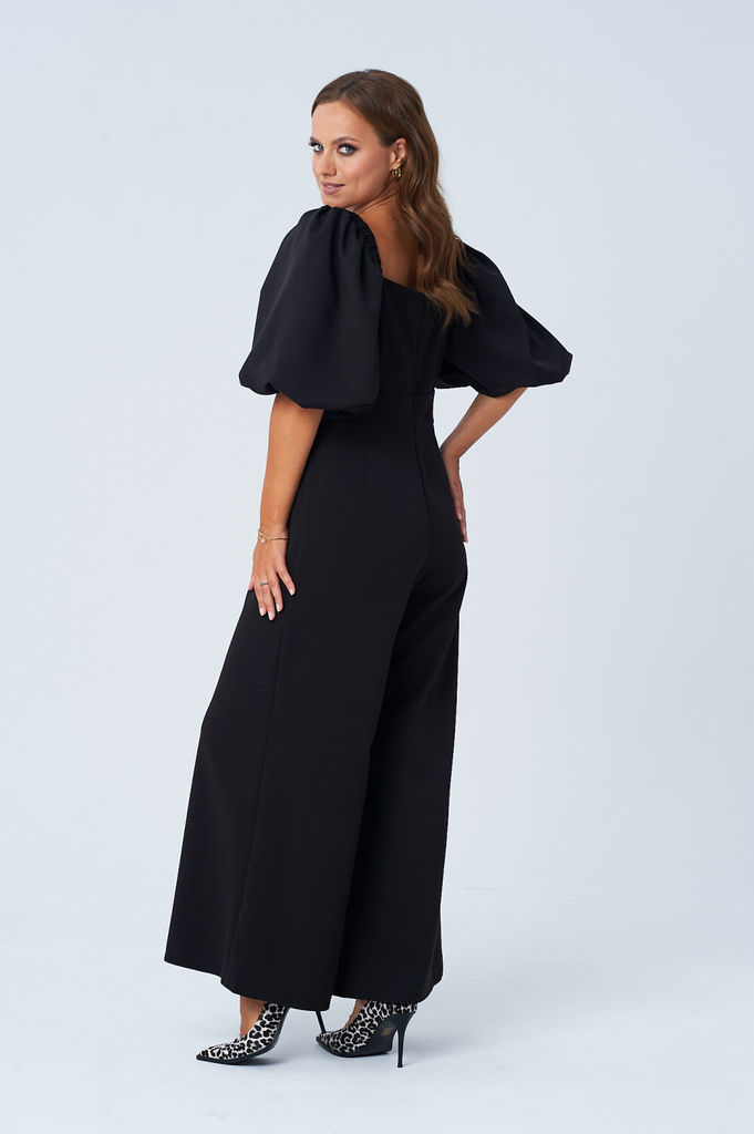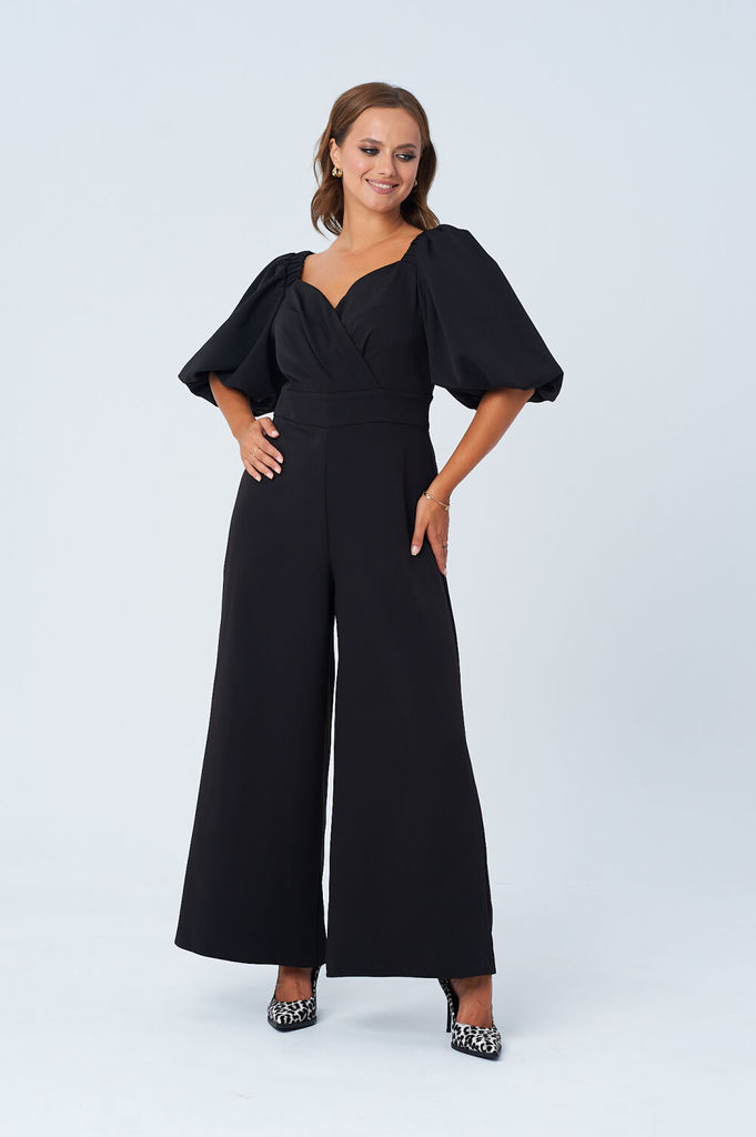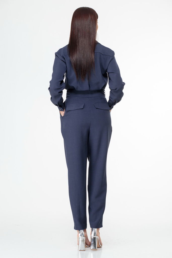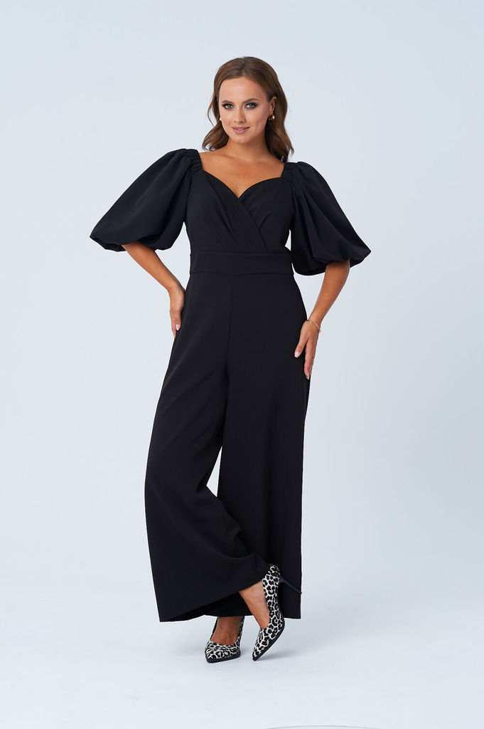 Состав: Вискоза-38%; ПЭ-62%; Комбинезон выполнен из полотна черного цвета. Комбинезон - яркий стильный образ, подойдет под низкий ход, высокий каблук, ботинки. Характеристики: полуприлегающий силуэт, ... Показать описаниеотрезной, отложной воротник, застежка центральная на планке на петли пуговицы, рукав втачной по низу рукава манжета на пуговичке, по переду крупные карманы с клапаном, по лини талии резинка, по заднему полотну имитация карманов с клапанами. Клапаны карманов украшены мелкими стразами. Низ брюк в изделии заканчивается резинкой. Длина по спинке 149, длина рукава 80 от края горловины.