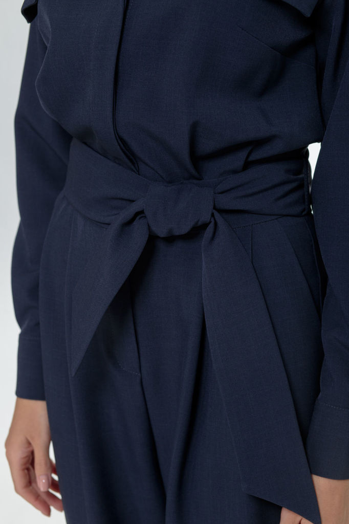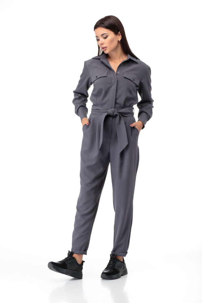 Состав: ПЭ-100%; Комбинезон свободного силуэта со спущенным плечом и застежкой на потайную тесьму молнию с переди. Вырез горловины круглый. Рукав втачной длинный. В боковых швах действующие карманы. П... Показать описаниеояс из основной ткани в комплекте.