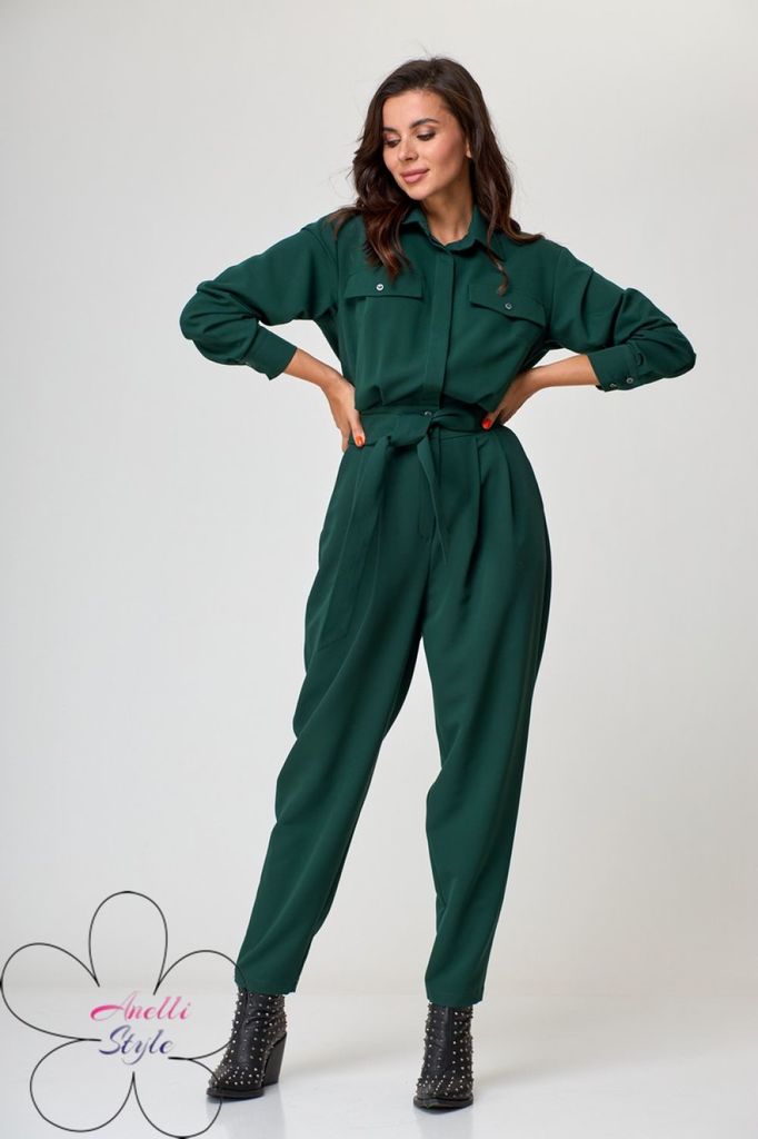 Состав: Вискоза-68%; ПЭ-28%; Эластан-4%; Стильный образ для современной леди! Комбинезон свободного силуэта на резинке от Анелли. По переду выполнены накладные карманы, по центру застёжка планка на пе... Показать описаниетли и пуговицы. Линия плеча спущена Воротник рубашечного типа, на стойке. Рукав свободный, по низу собран на резинку. Нижняя часть - брюки на поясе с резинкой, не сковывает движений. В боковых швах обработаны карманы. В сочетании с правильными аксессуарами может быть и вечерним и повседневным нарядом. Замеры: Размер 44: ОГ-104; ОТ-68; ОБ-104; ОП-40; ДИ с поясом - 48; ДР–42; ШП-29; ДИ без пояса - 94; ширина по низу - 32; Размер 46: ОГ-108; ОТ-72; ОБ-108; ОП-42; ДИ с поясом - 48; ДР–42; ШП-30; ДИ без пояса - 95; ширина по низу - 32; Размер 48: ОГ-112; ОТ-76; ОБ-112; ОП-42; ДИ с поясом - 48; ДР–42; ШП-30; ДИ без пояса - 95; ширина по низу - 33; Размер 50: ОГ-116; ОТ-80; ОБ-116; ОП-44; ДИ с поясом - 48; ДР–42; ШП-31; ДИ без пояса - 95; ширина по низу - 34;