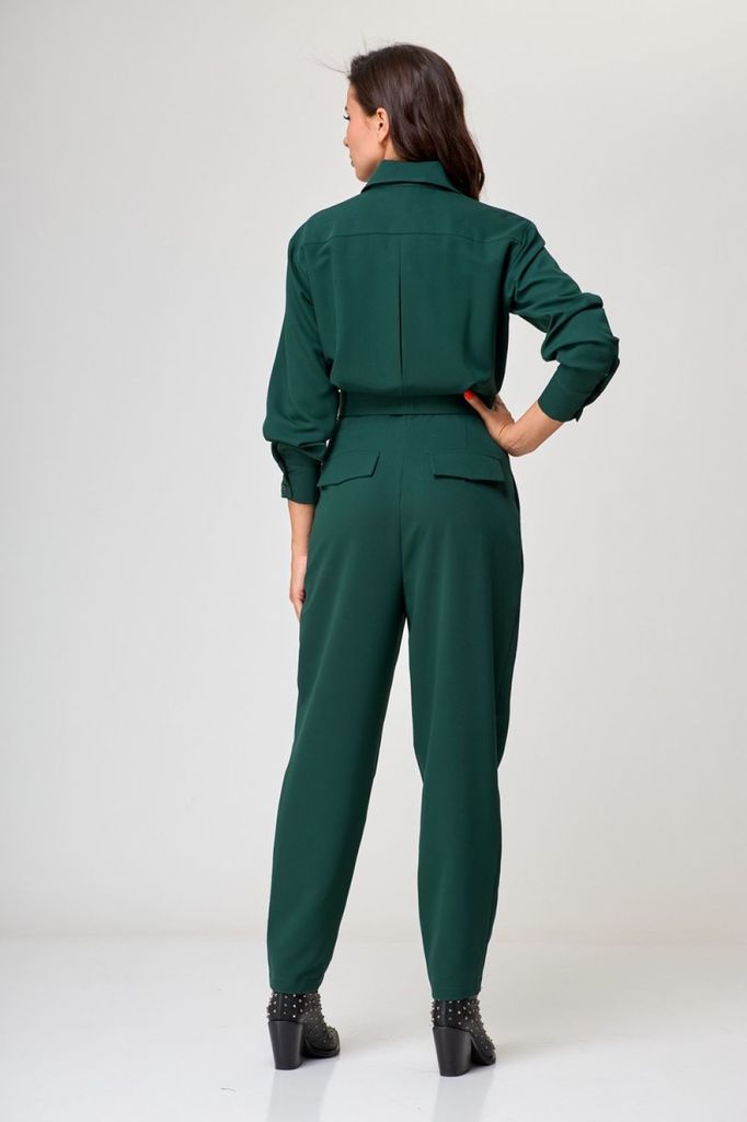 Состав: Вискоза-68%; ПЭ-28%; Эластан-4%; Комбинезон из костюмной ткани создает стильный образ как для каждого дня так и для выхода в свет. Комбинезон полуприлегающего силуэта, на передних частях обраб... Показать описаниеотаны нагрудные вытачки и клапаны, потайная застежка планка на петли и пуговицы, спинка с кокеткой, по центру складка на свободу движения. Нижняя часть комбинезона выполнена на широком поясе, по переду заложены складки, застежка «гульфик». Обработаны боковые карманы, на задних частях обработаны талиевые вытачки и клапаны. Воротник рубашечного типа, на стойке. Рукава втачные, длинные, на притачной манжете, с застежкой на петли и пуговицы. В комплекте съемный пояс из основной ткани. Замеры: Рост фотомодели -171 см. Размер фотомодели – 44. ОГ-обхват груди; ОТ-обхват талии; ОБ-обхват бедер; ДИ-длина изделия (длина брюк от талии); ДР-длина рукава (от выреза горловины). Размер 44. ОГ- 100; ОТ-73; ОБ-110; (длина от верхнего края пояса) ДИ-103,5; ДР–56. Размер 46. ОГ- 104 ОТ-77; ОБ-114; ДИ-104; ДР–56,5. Размер 48. ОГ- 108; ОТ-81; ОБ-118; ДИ-104,5; ДР–57. Размер 50. ОГ- 112; ОТ-85; ОБ-122; ДИ-105; ДР–57,5.