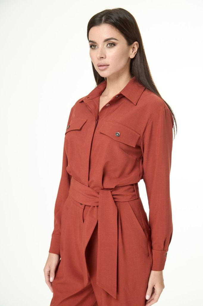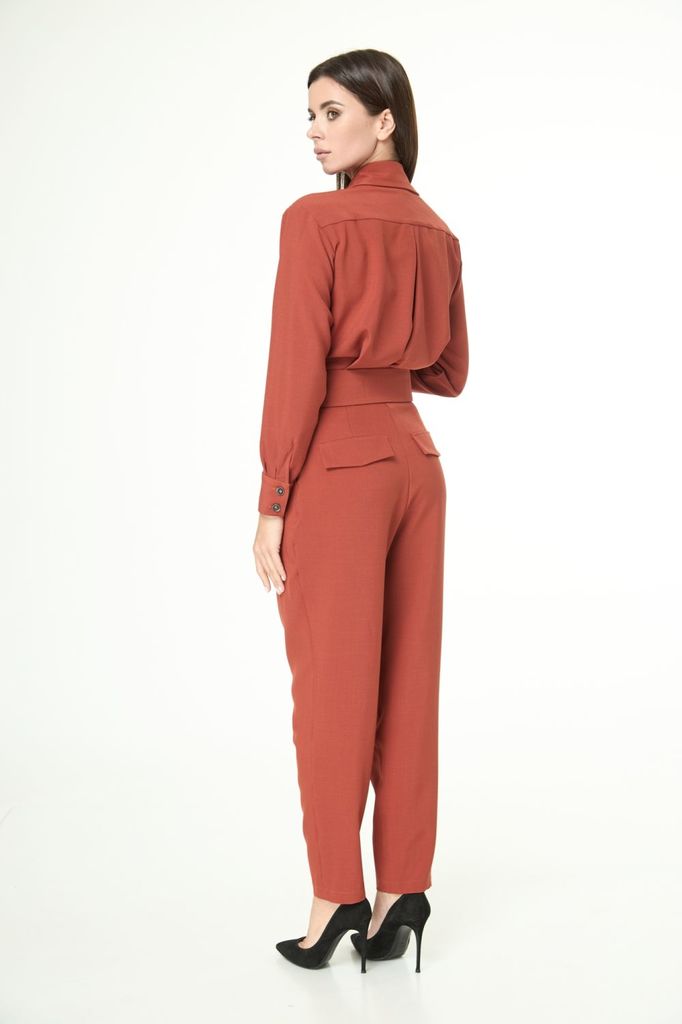 Состав: Вискоза-68%; ПЭ-28%; Эластан-4%; Комбинезон из костюмной ткани создает стильный образ как для каждого дня так и для выхода в свет. Комбинезон полуприлегающего силуэта, на передних частях обраб... Показать описаниеотаны нагрудные вытачки и клапаны, потайная застежка-планка на петли и пуговицы, спинка с кокеткой, по центру складка на свободу движения. Нижняя часть комбинезона выполнена на широком поясе, по переду заложены складки, застежка «гульфик». Обработаны боковые карманы, на задних частях обработаны талиевые вытачки и клапаны. Воротник рубашечного типа, на стойке. Рукава втачные, длинные, на притачной манжете, с застежкой на петли и пуговицы. В комплекте съемный пояс из основной ткани. При помощи обуви и бижутерии можно создать разные образы для различных поводов. Комбинезон преобразит ваш гардероб. Вся необходимая информация о производителе указана на этикетке. Цвет на фото может отличаться от цвета изделия вживую из-за разницы освещения и цветопередачи экранов, на которых просматривается изображение. Аксессуары, которые входят в комплект, могут отличаться от используемых при сьемке. Комплектацию уточняйте. Замеры: Рост фотомодели -171 см. Размер фотомодели – 48. ОГ-обхват груди; ОТ-обхват талии; ОБ-обхват бедер; ДИ-длина изделия (длина от талии до низа брюк); ДР-длина рукава (от выреза горловины). ПРИМЕЧАНИЕ к замеру: длина указана от талии до низа брюк; длина рукава указана от выреза горловины. Размер 48 ОГ- 96; ОТ-78; ОБ-104; ДИ-103(длина от талии до низа брюк) ; ДР–57 Размер 50 ОГ- 100; ОТ-82; ОБ-108; ДИ-103(длина от талии до низа брюк); ДР–57 Размер 52 ОГ- 104; ОТ-86; ОБ-112; ДИ-103(длина от талии до низа брюк); ДР–57 Размер 54 ОГ- 108; ОТ-90; ОБ-116; ДИ-103(длина от талии до низа брюк); ДР–57