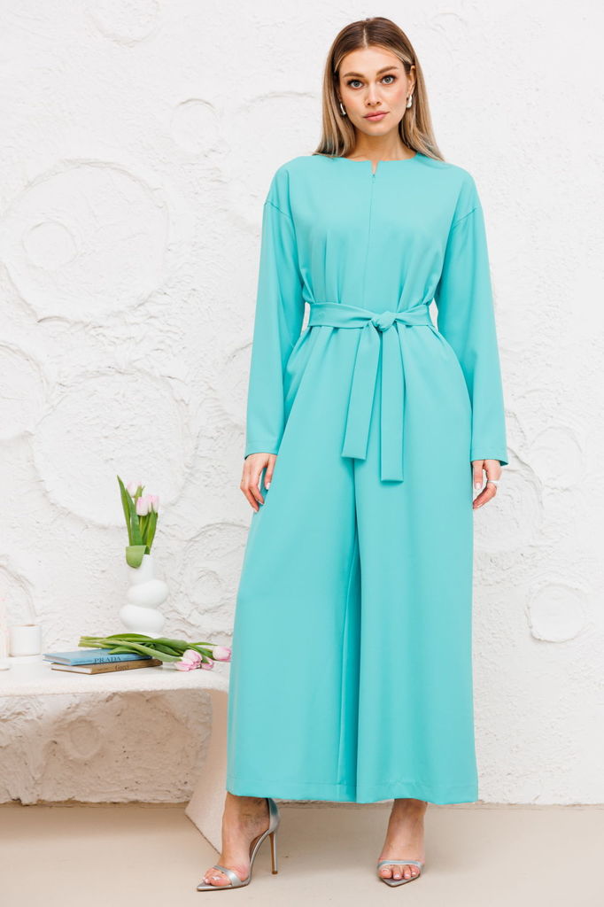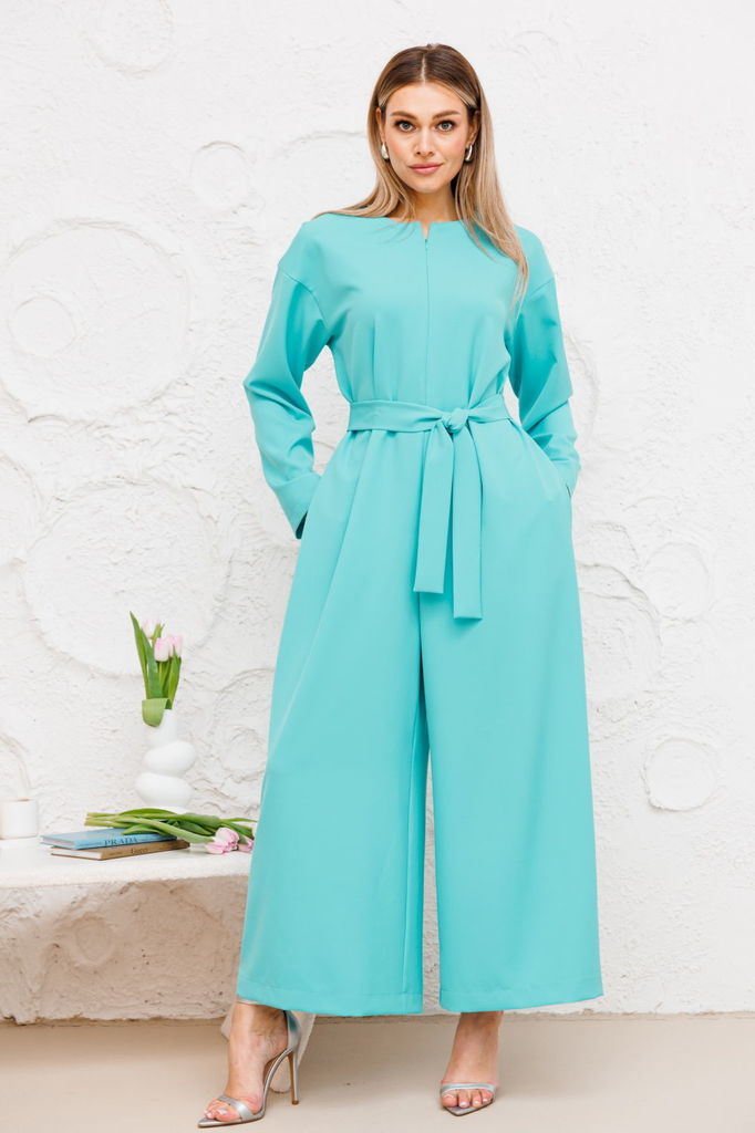 Состав: Вискоза-90%; Эластан-10%; Стильный и невероятно роскошный комбинезон, выполнен из высококачественной плательной ткани. Комбинезон отрезной по линии талии, по спинке с небольшим разрезом-капель... Показать описаниекой и застежкой на пуговицу. Рукав цельнокроеный, спущенный, с манжетой. В комплект входит съемный широкий пояс, что придает модели особый шарм. Комбинезон прекрасно подойдет для торжественного мероприятия, а также для деловой встречи. Модель удобная и практичная, вы будете в нем выглядеть неотразимо.