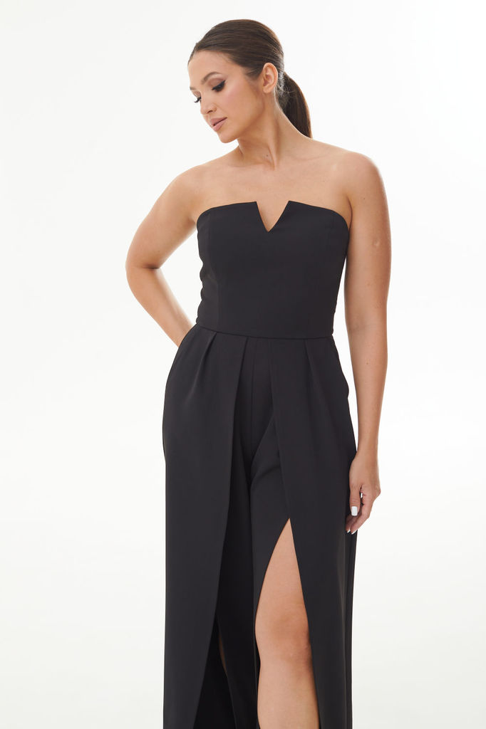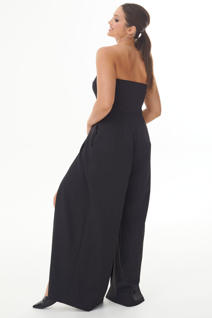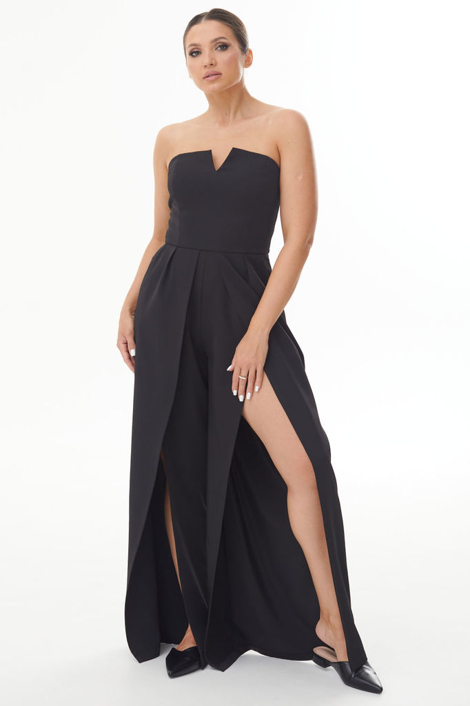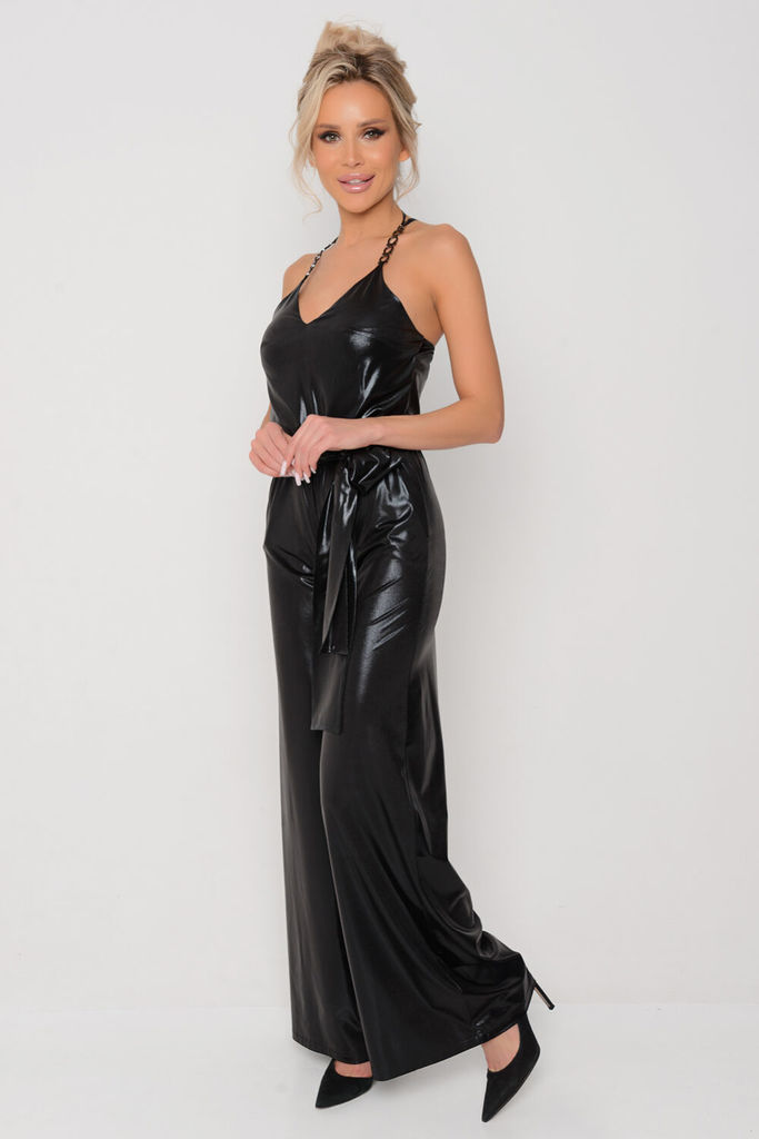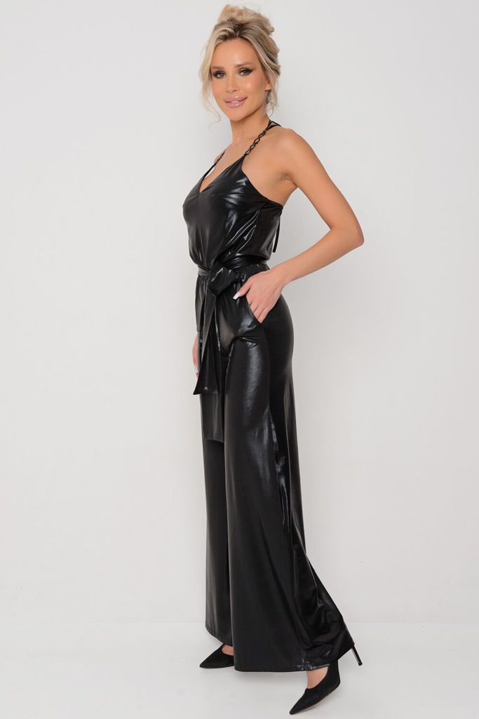 Состав: Вискоза-100%; Комбинезон нарядной группы , прилегающего силуэта, талия собрана на резинке и имеется пояс. Верх с нагрудными выточками на бретелях с завязками, которые можно регулировать. В вер... Показать описаниехней части имеется молния по боковому шву . Длина брюк 108 см Длина лифа 33 см до завязок.